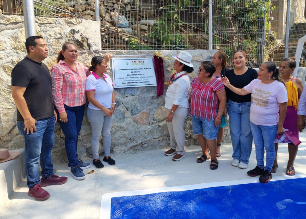 Durante su gira de trabajo, acompañada por la secretaria general del Ayuntamiento, Leticia Lozano Zavala, la alcaldesa entregó la cancha pública El Amate, proyecto que contó con una inversión de 2 millones 620 mil pesos y que constituye un espacio recuperado para el deporte, la recreación y la integración social, tras permanecer durante años como una solicitud pendiente de las familias del lugar.