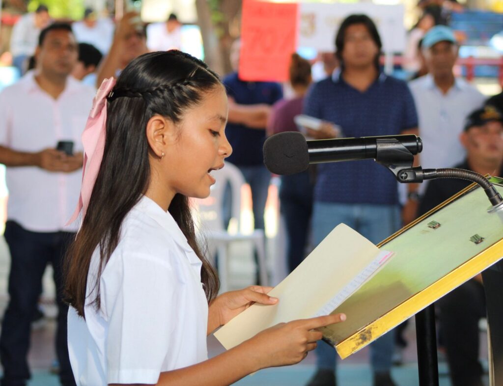 Celia Barrera Mollado, de la colonia 6 de Enero, expresó su agradecimiento: “Quiero felicitar a la tía Abe porque este bello puerto lo ha dejado bonito y de 10. A nombre de mis vecinos, quiero darle las gracias ya que nuestra colonia se ha beneficiado con alumbrado público y queremos pedirle también la continuación de nuestra calle Juan R. Escudero. La presidenta no es como los demás; ella vino a trabajar, a servir y a transformar”.
