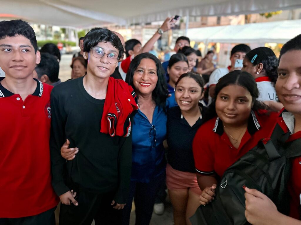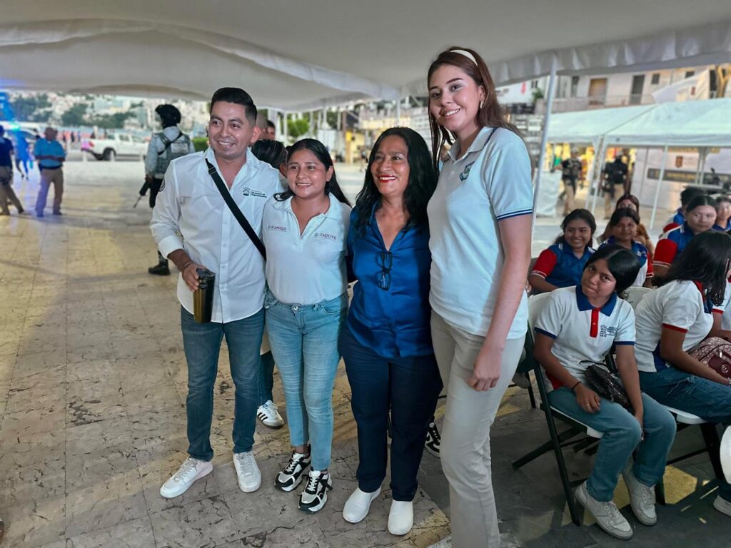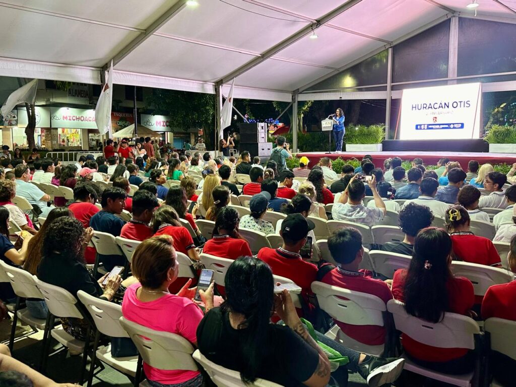 En su mensaje, la presidenta municipal exhortó a las y los jóvenes a asumir un papel activo frente al cambio climático y recordó que su administración ha entregado más de 24 mil árboles para recuperar la cobertura vegetal afectada por Otis.