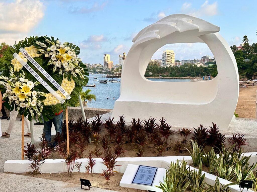 Autoridades civiles y militares montaron una guardia de honor en la escultura Viento en Reposo, ubicada en el Paseo del Pescador, en memoria de las víctimas de Otis.