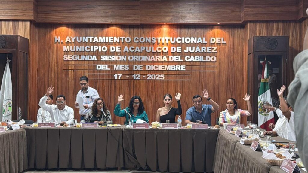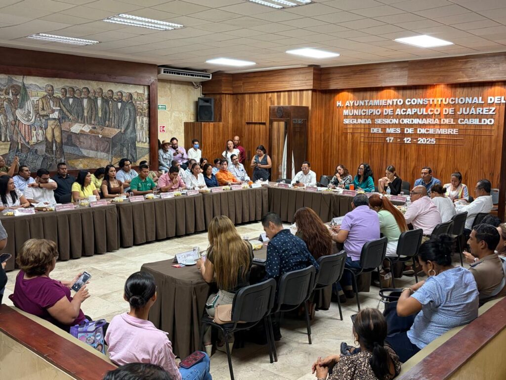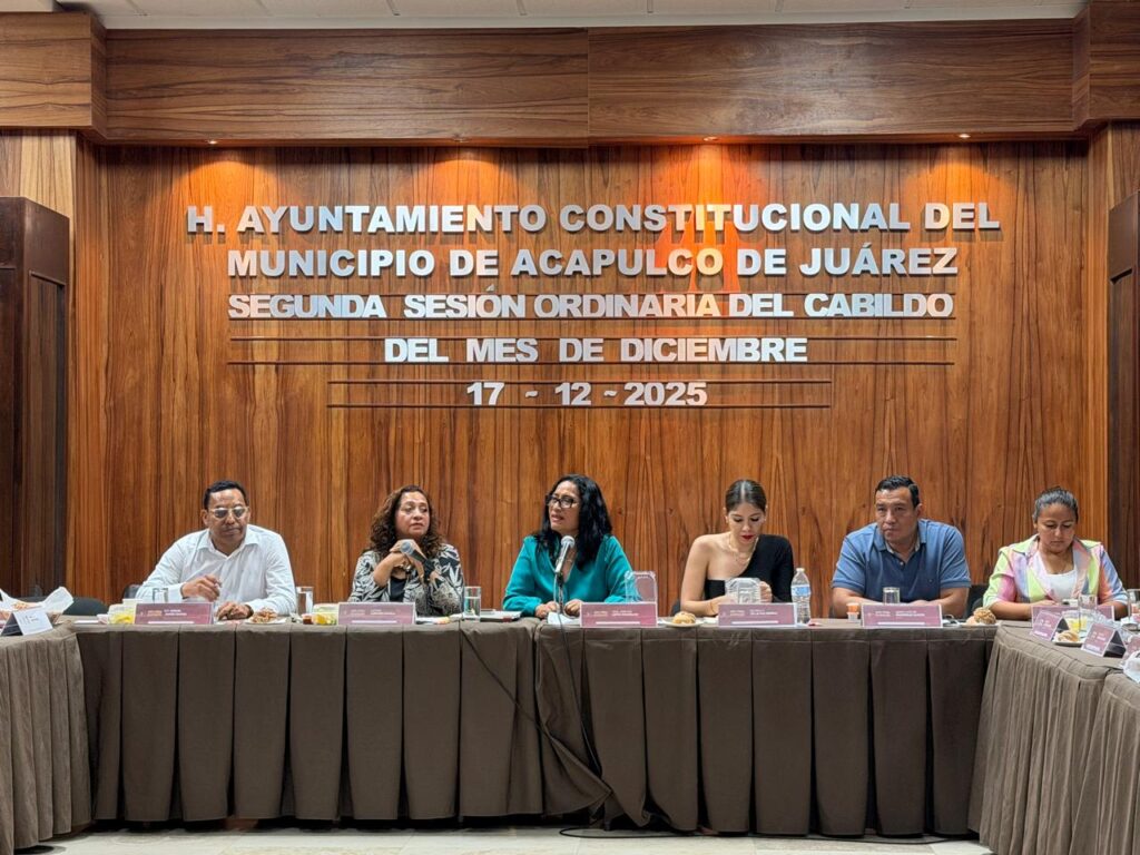 Acapulco, Gro., 17 de diciembre de 2025.- El Ayuntamiento de Acapulco celebró la Segunda Sesión Ordinaria de Cabildo correspondiente a diciembre, encabezada por la presidenta Abelina López Rodríguez, en la que se analizaron y canalizaron diversos asuntos relacionados con servicios públicos, obra municipal y actualización del marco normativo interno.