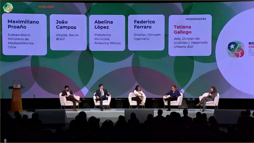 Participaron en este panel, el subsecretario de Ministerio de Medioambiente de Chile, Maximiliano Proaño; el alcalde de Recife, Brasil, Joao Campos; el director de Omixom Ingeniería, Federico Ferraro y la deja de División de Vivienda y Desarrollo Urbano del BID, Tatiana Gallego.