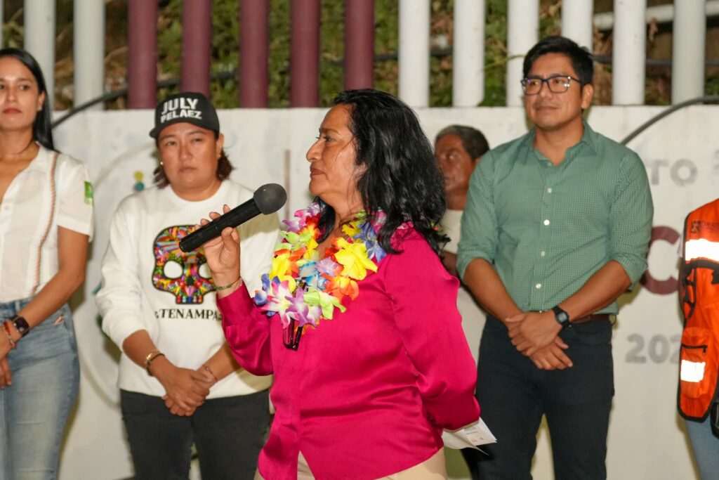 A nombre de la escuela bilingüe Telpochcalli, la directora María Guadalupe Armenta Flores agradeció a la presidenta municipal la entrega de apoyos como desayunos escolares calientes para los alumnos, despensas del DIF destinadas a grupos vulnerables y alumbrado público.