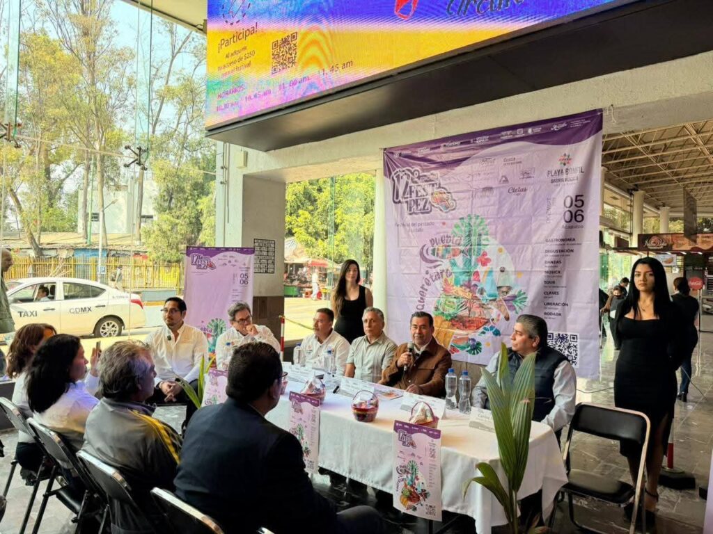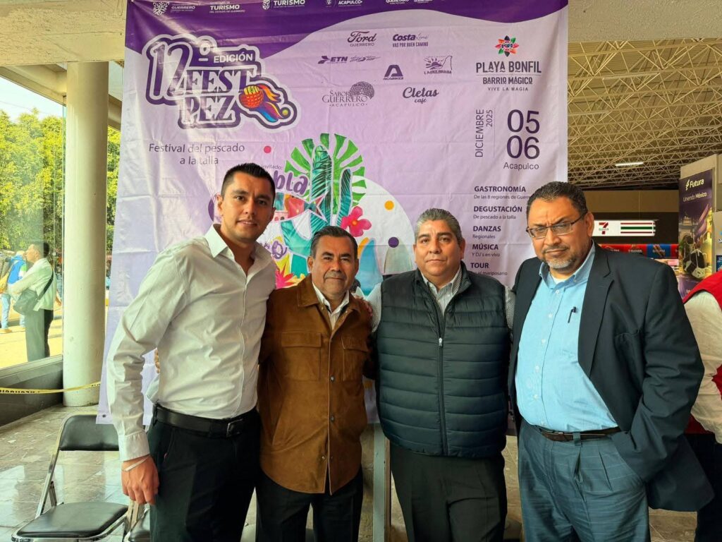 Ciudad de México, 26 de noviembre de 2025.- Por instrucciones de la presidenta Abelina López Rodríguez, el secretario de Turismo de Acapulco, Noé Peralta Herrera, asistió a la conferencia de prensa de la 12.ª edición del Festival del Pescado a la Talla, celebrada en la Terminal de Autobuses de Taxqueña, en la Ciudad de México, donde se presentó la imagen oficial del evento programado para los días 5 y 6 de diciembre de 2025 en Playa Bonfil, Barrio Mágico, uno de los rincones más representativos del puerto.