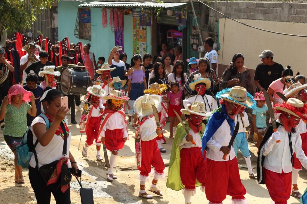 El Paseo del Pendón, que año con año se celebra en El Veladero, reunió danzas regionales como la de Los Chinelos y Los Diablos de la colonia Cervantes Delgado, tradición que forma parte de la identidad cultural de la comunidad.
