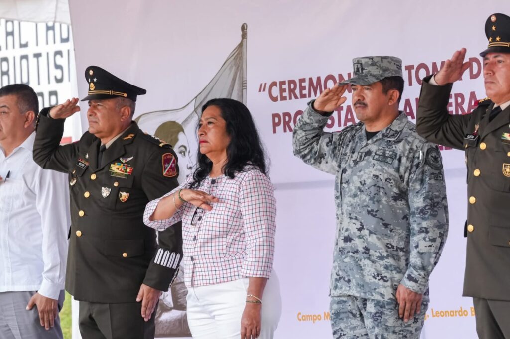 Durante la ceremonia se rindieron honores a la Bandera Nacional y se entonó el Himno Nacional Mexicano, en presencia de mandos militares y representantes de los tres niveles de gobierno.