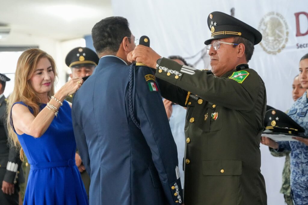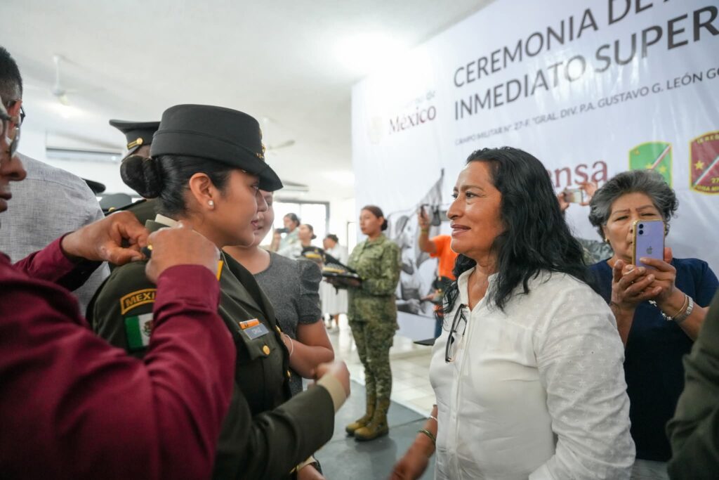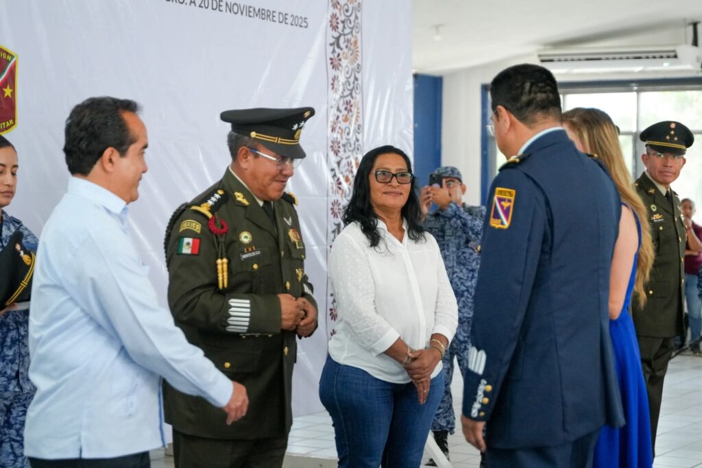 La presidenta municipal acompañó el acto y reafirmó el respaldo del gobierno local a las Fuerzas Armadas y su compromiso con la coordinación institucional. Los mandos ascendidos recibieron sus insignias en un evento que reflejó disciplina, esfuerzo y profesionalismo, resaltando la trayectoria de quienes integran la Promoción General Superior 2025.