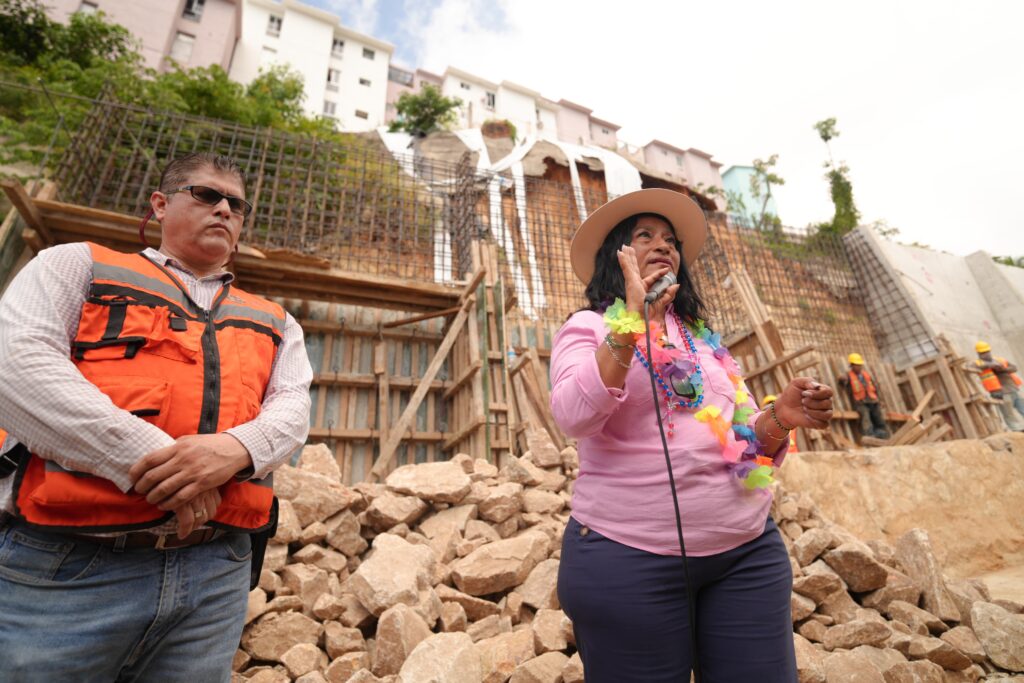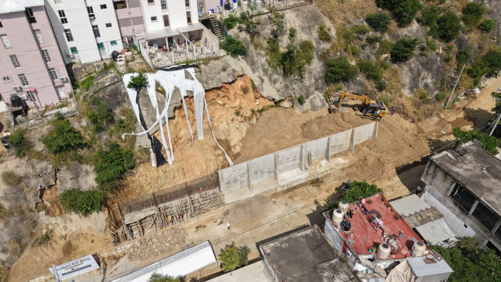 Acapulco, Gro., 25 de octubre de 2025.- La presidenta municipal Abelina López Rodríguez supervisó la construcción del muro de contención en la calle Paseo de la Cañada, Infonavit Alta Progreso Quinta Etapa, una obra de 8 millones 189 mil pesos que beneficiará a más de 700 personas y forma parte de la Semana de Prevención y Resiliencia por el segundo aniversario del huracán Otis.