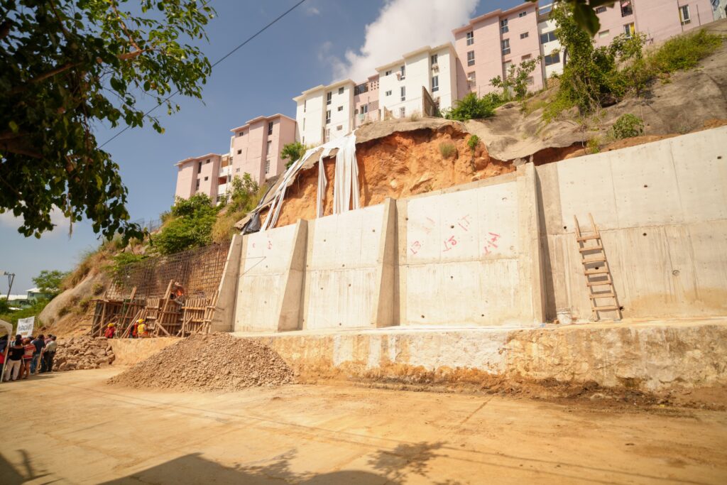 El director de Obras Públicas, Vladimir Hernández Alemán, explicó que la obra consta de un muro de contención de 80 metros lineales, distribuidos en dos niveles de 40 metros cada uno y seis metros de altura. Se utilizó concreto de 300 kilos por centímetro cuadrado para garantizar resistencia frente a deslaves o incidentes por lluvias, con una inversión de 8 millones 189 mil pesos.