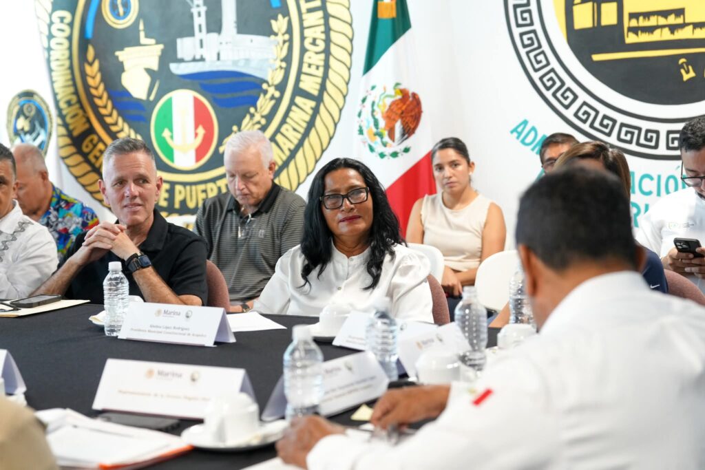 Acapulco, Gro., 05 de noviembre de 2025.- En las instalaciones de la Administración del Sistema Portuario Nacional (ASIPONA) de Acapulco, la presidenta municipal Abelina López Rodríguez encabezó un recorrido y sostuvo una reunión de trabajo previa al arribo del crucero MS Regatta, programado para este viernes.