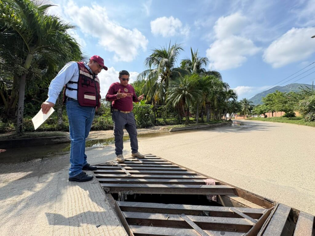 Durante la inspección, las autoridades acordaron la limpieza y desazolve del canal pluvial ubicado detrás de Plaza Patio, a fin de garantizar el libre paso del agua y evitar acumulaciones que puedan provocar afectaciones a viviendas o comercios.