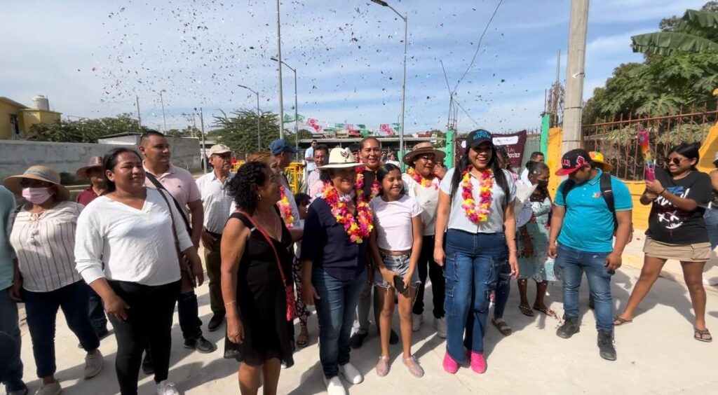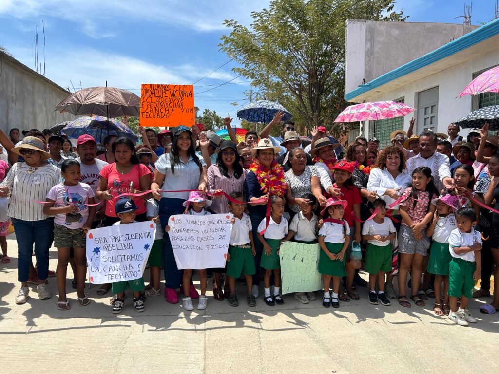 En la entrega del techado y mural en la colonia Emiliano Zapata, en coordinación con los gobiernos estatal y federal, Abelina López Rodríguez fue recibida por los vecinos, quienes reconocieron la ardua labor y las grandes obras de infraestructura hidráulica, drenaje, carretera y social que ha realizado en beneficio de las y los vecinos.