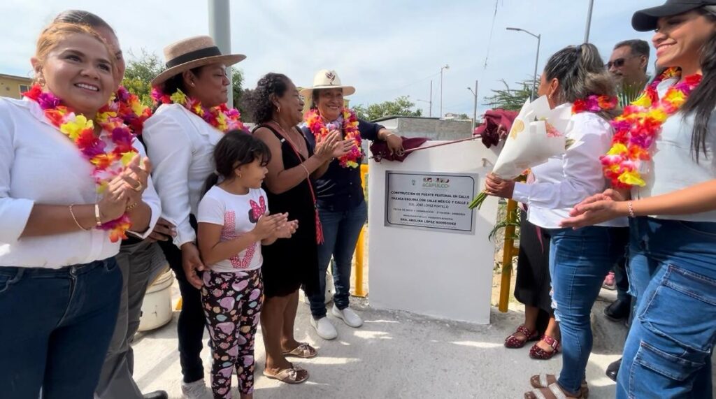 En el siguiente punto la primera autoridad inauguró la construcción del puente peatonal en la calle Oaxaca esquina con calle México y Calle 2 en la colonia José López Portillo, la cual contó con una inversión de 2 millones 500 mil pesos y beneficiara a más de 120 habitantes.