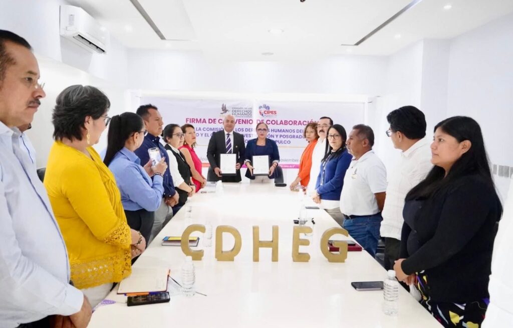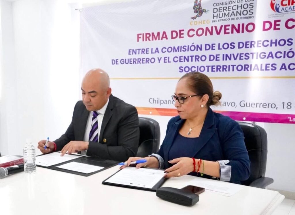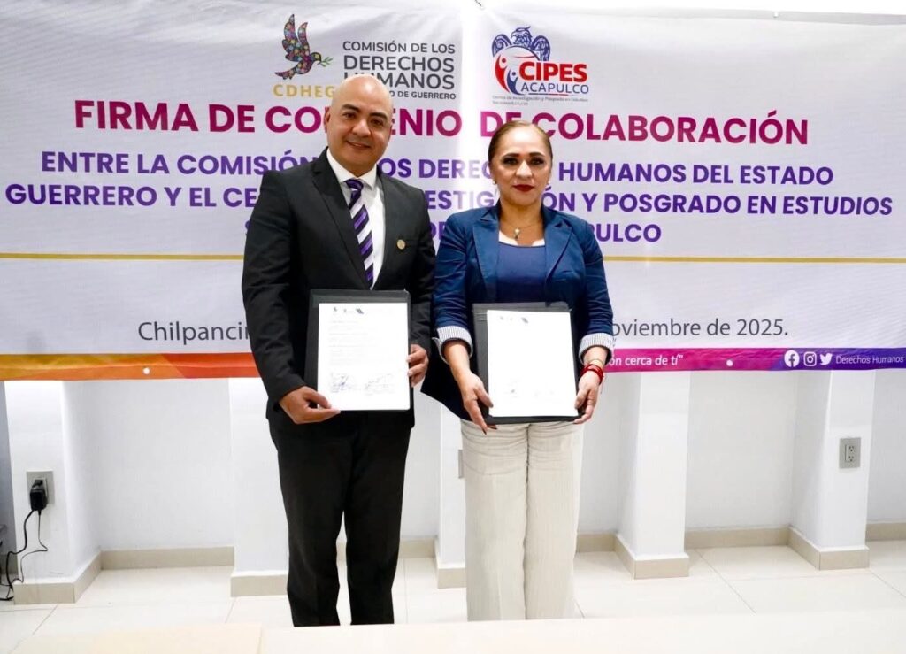 La Comisión de los Derechos Humanos del Estado de Guerrero (CDHEG), que preside la Mtra. Cecilia Narciso Gaytán, firmó un convenio de colaboración con el Centro de Investigación y Posgrado en Estudios Socioterritoriales (CIPES Acapulco), representado por su director, Dr. Marco Polo Calderón Arellanes.