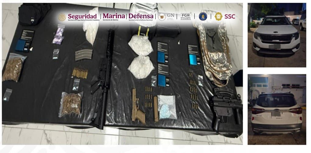Entre los capturados se encuentra un hombre identificado como líder de la célula criminal, acompañado de cuatro operadores de primer nivel. Durante la acción, se aseguraron tres armas de fuego de distintos calibres, 51 cartuchos útiles, cuatro básculas grameras, 80 dosis y medio kilo de una sustancia con características del crystal, 50 gramos de posibles pastillas de fentanilo y dos bolsas con alrededor de 165 gramos de hierba seca, presuntamente marihuana.