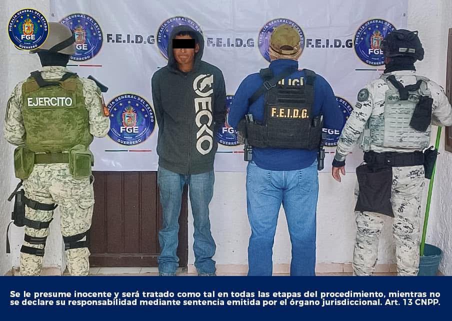 Chilpancingo, Gro., a 7 de enero de 2026.— En cumplimiento a un mandato judicial, la Fiscalía General del Estado de Guerrero, en coordinación con la Secretaría de la Defensa Nacional (DEFENSA), Guardia Nacional (GN), Secretaría de Seguridad y Protección Ciudadana (SSPC) y Policía Estatal, cumplimentó una orden de aprehensión en contra de Margarito “N”, por su probable responsabilidad en el delito de homicidio calificado, en agravio de Sergio “N”, ocurrido en el municipio de Chilpancingo de los Bravo.