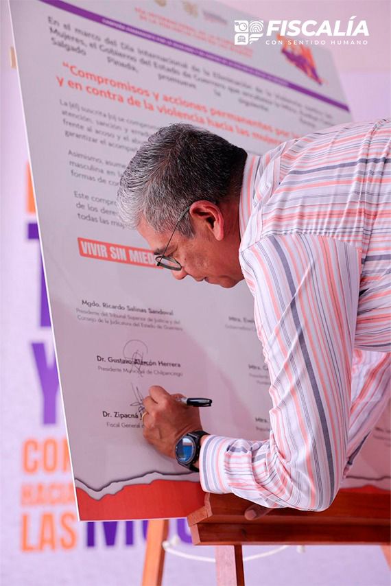 Chilpancingo, Gro. a 24 de noviembre de 2025.— La Fiscalía General del Estado de Guerrero (FGE Guerrero) destacó los avances alcanzados en la atención, protección y acceso a la justicia para mujeres, adolescentes y niñas, en el marco de la firma de compromisos y acciones permanentes por la igualdad y la erradicación de la violencia de género en Guerrero, encabezada por la gobernadora Evelyn Salgado Pineda.