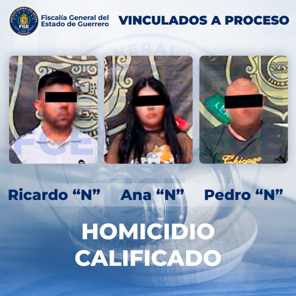 Chilpancingo, Gro., a 30 de septiembre de 2025. – La Fiscalía General del Estado de Guerrero informa que obtuvo vinculación a proceso en contra de Ana “N”, Ricardo “N” y Pedro «N», por su probable responsabilidad en el delito de homicidio calificado, en agravio de Luis “N”, en hechos ocurridos en el municipio de Acapulco de Juárez.
