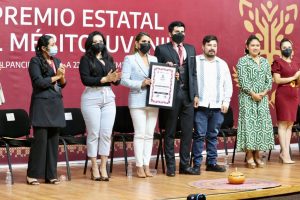 Chilpancingo, Gro. 22 de septiembre del 2022. – Por su contribución al desarrollo de Guerrero desde cada una de sus áreas de oportunidad, 11 mujeres y hombres jóvenes fueron galardonados con el Premio Estatal al Mérito Juvenil 2022 por la gobernadora Evelyn Salgado Pineda, quien les reconoció su talento y labor en el desarrollo humano, crecimiento profesional y buenas prácticas en el ámbito social y comunitario en favor de Guerrero.