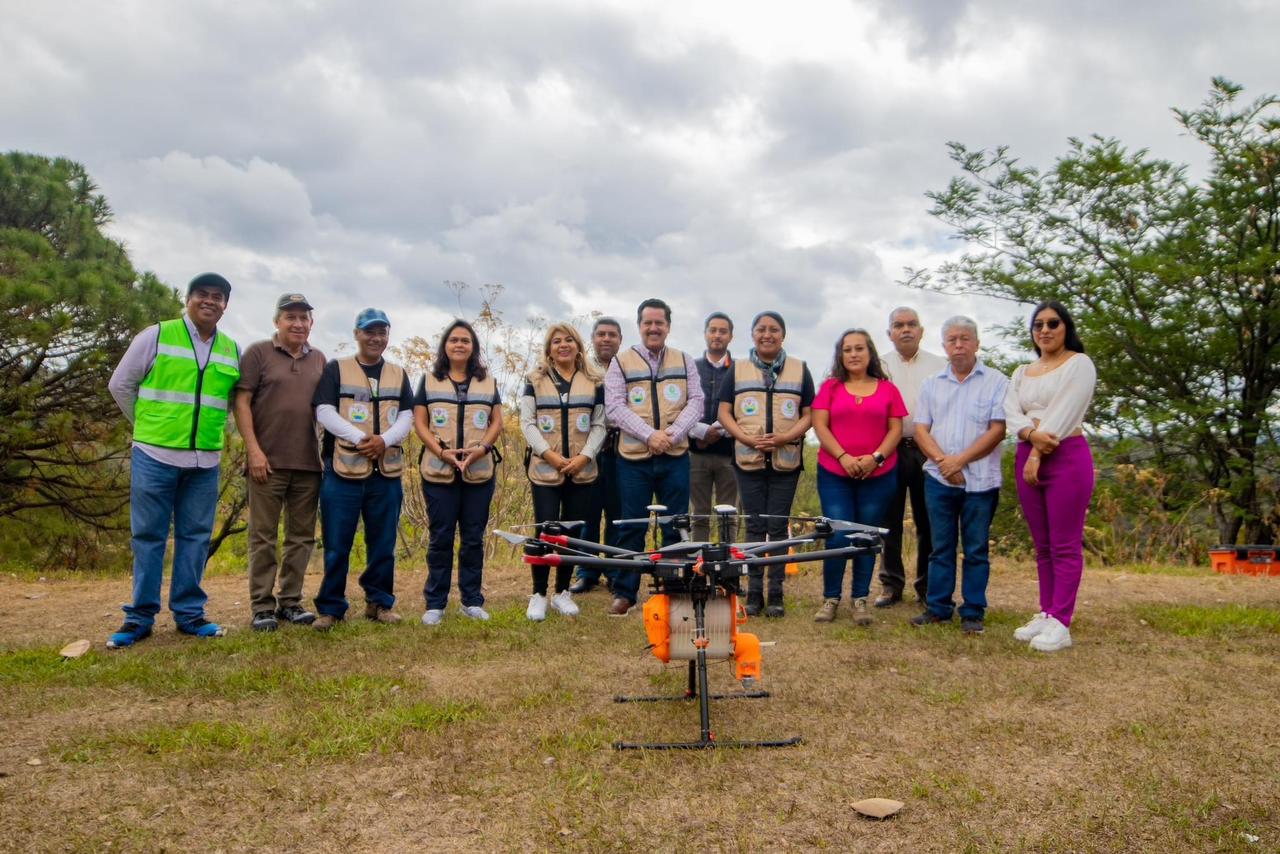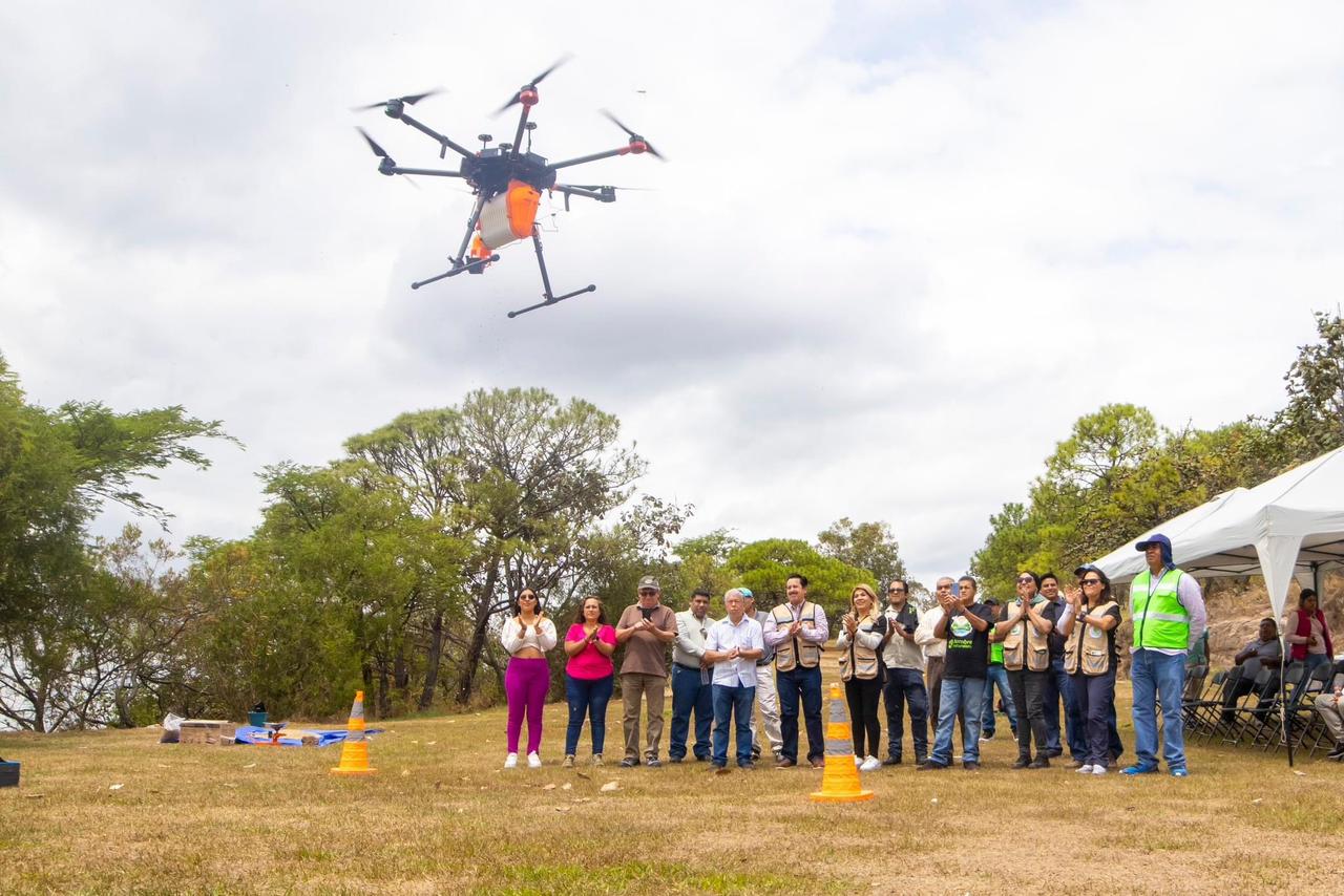 Para esta tarea se utilizó un dron con capacidad para transportar un kilogramo en cada vuelo; se regaron semillas de Cedro, Tepehuaje, Romero, Ocote, Quiote y Chapulixtle, de los que en algunos años los cerros lucirán el verdor que proporcione el crecimiento y desarrollo de estos árboles de la mano del cuidado que se les brinde.