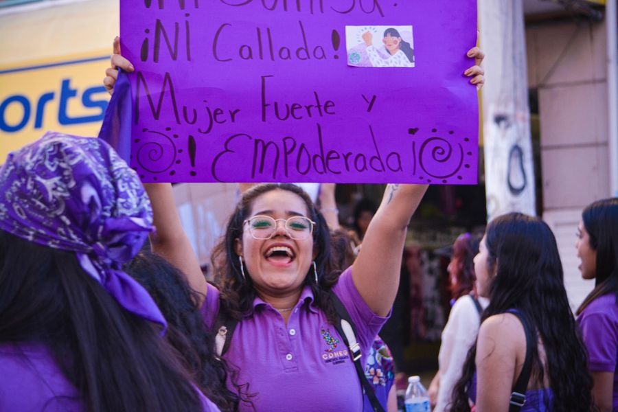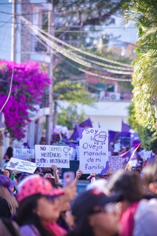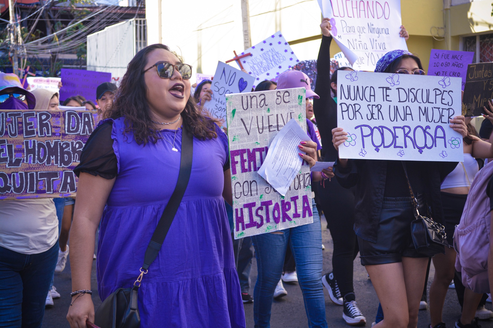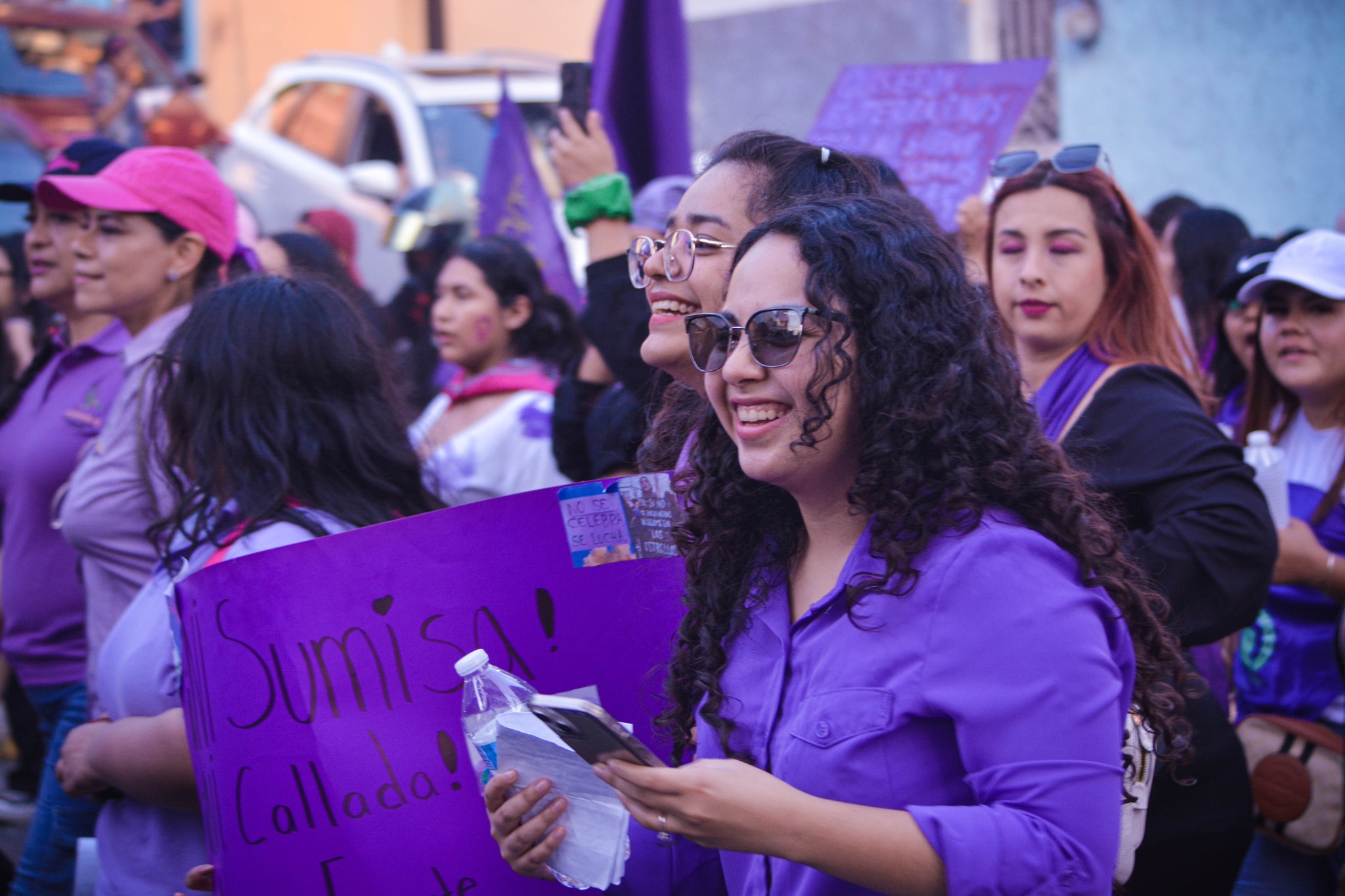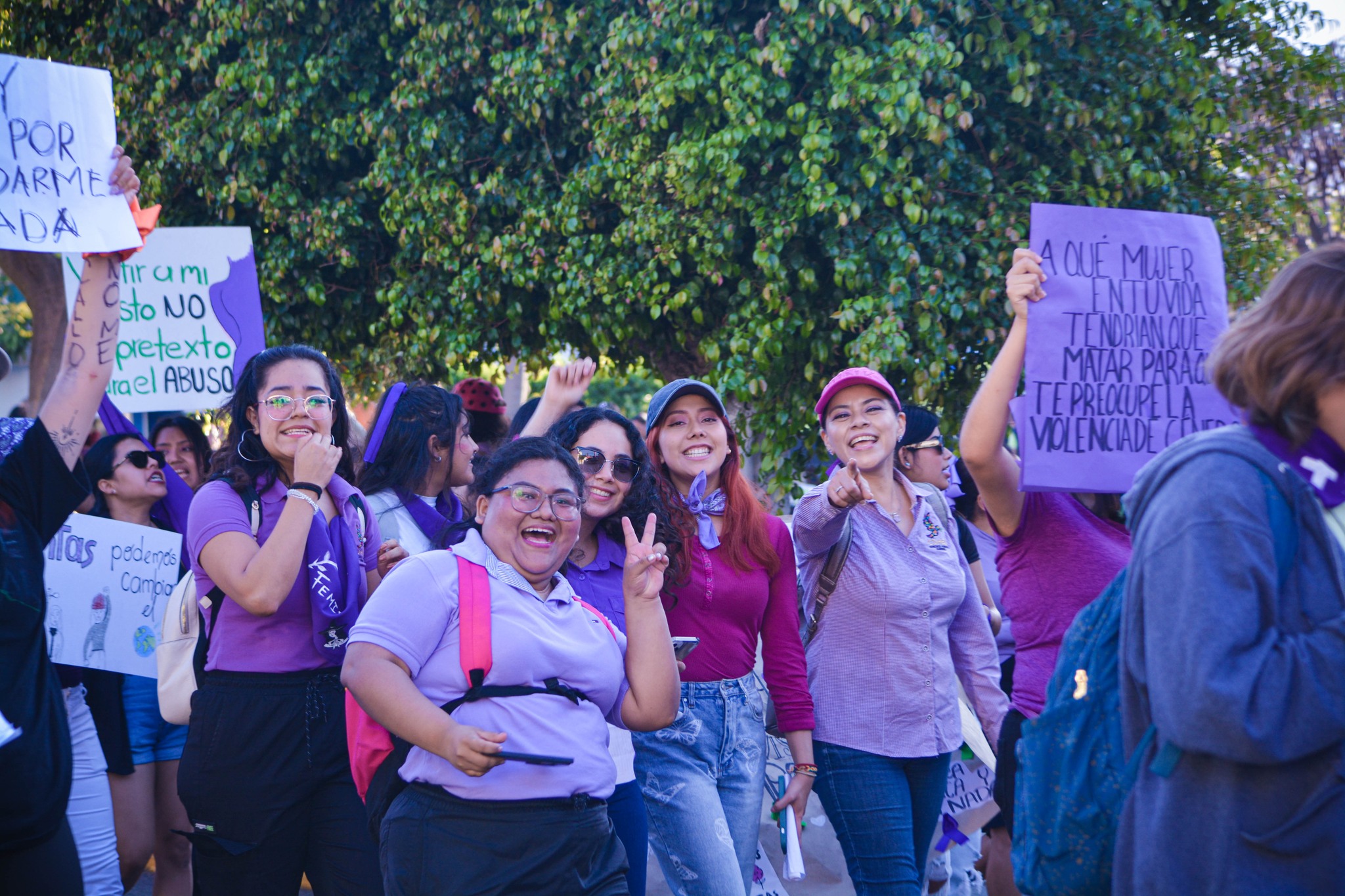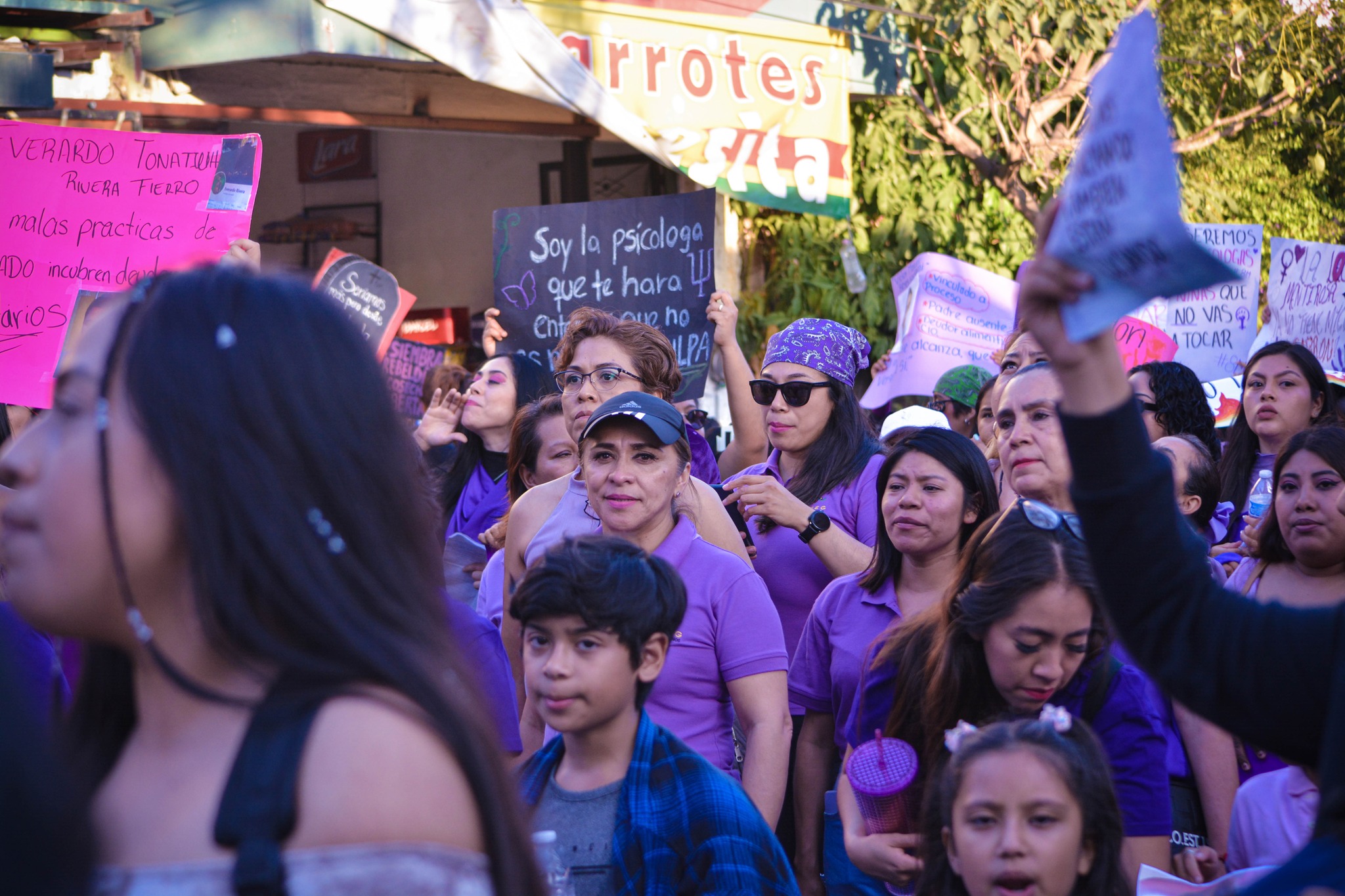 Caminando en el contingente y acompañada por su equipo de trabajo, la Presidenta escuchó atentamente las demandas y reclamos de las manifestantes, reconociendo la lucha diaria de las mujeres por vivir libres de violencia y reafirmando el compromiso inquebrantable de la Comisión por salvaguardar y promover los derechos humanos de mujeres, niñas, adolescentes y adultas mayores en todo el territorio estatal.