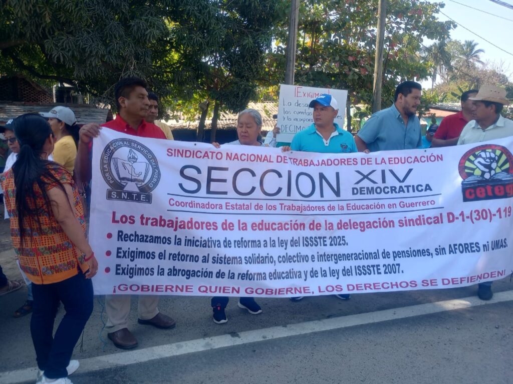 Igualapa, Gro. 7 de marzo de 2025. En un acto de protesta pacífica, maestros pertenecientes a la Coordinadora Estatal de Trabajadores de la Educación de Guerrero (CETEG) y al Sindicato Nacional de Trabajadores de la Educación (SENTE), llevaron a cabo una jornada de volanteo en la carretera federal Acapulco-Pinotepa Nacional, a la altura de San Juan de los Llanos.