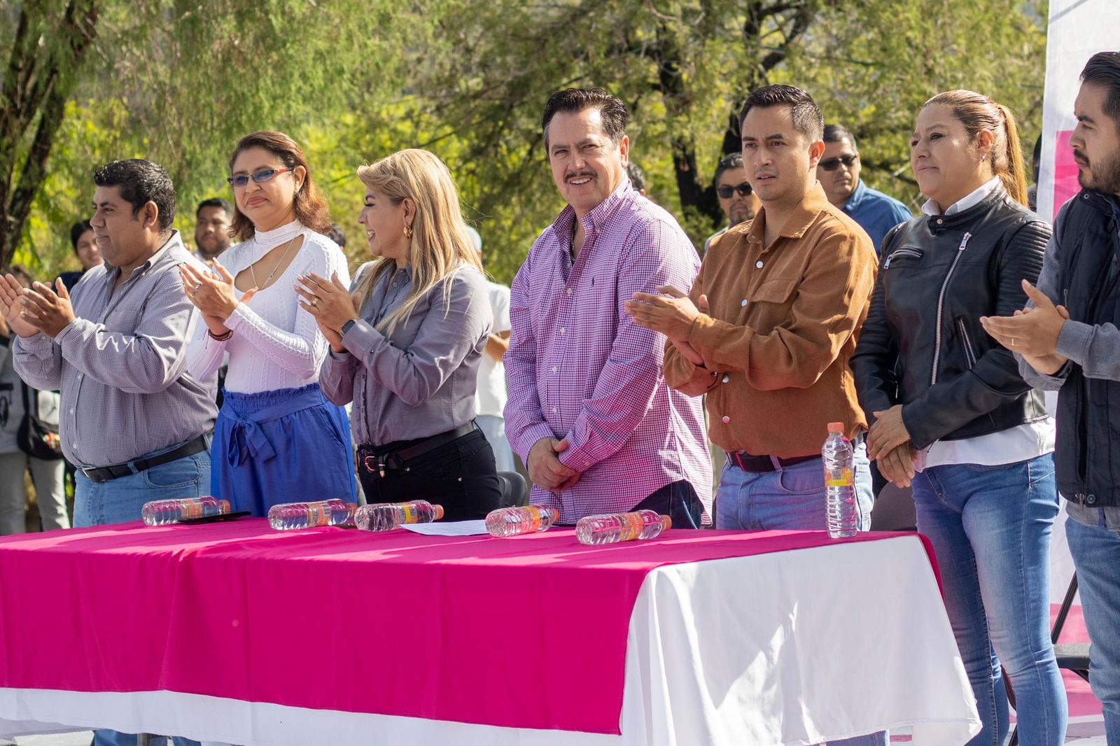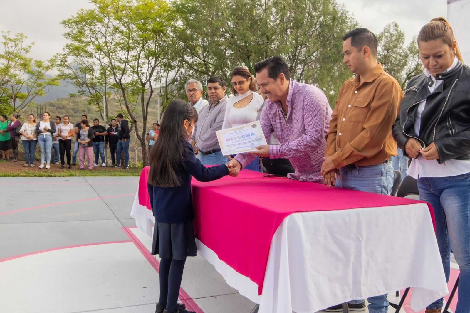 Figueroa Mundo estuvo acompañado de su esposa la Presidenta del DIF Taxco Estela Villa de Figueroa, de regidores de la comuna, del Comité de Padres de familia de la Institución Educativa, del director de la Escuela el Profesor Francisco de la Rosa, del personal docente y alumnado; del comisario de la comunidad. Testigos todos de la entrega de esta importante obra que beneficia a la comunidad escolar.