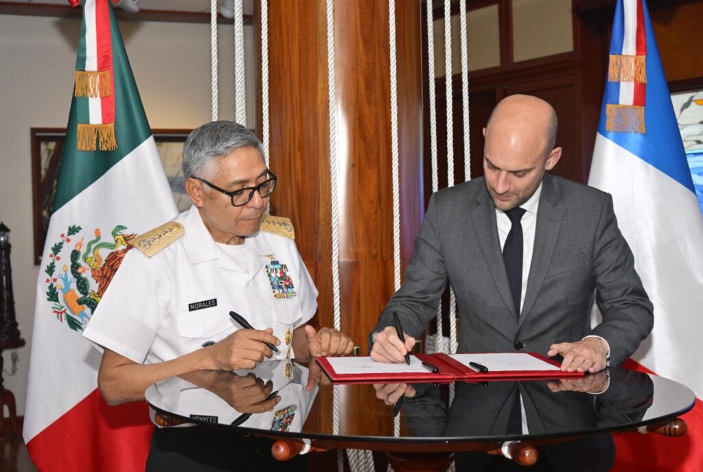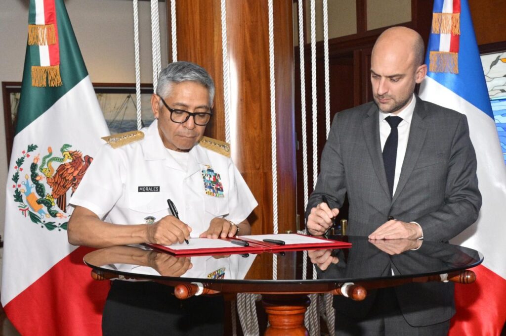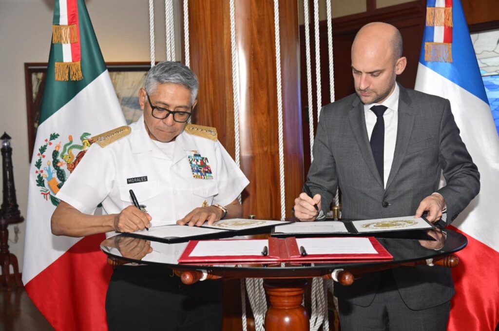 Ciudad de México.- La Secretaría de Marina a través de la Armada de México informa que este 07 de noviembre, el Almirante Raymundo Pedro Morales Ángeles, Secretario de Marina, y el Ministro de Economía, Finanzas y Soberanía Industrial, Energética y Digital de la República Francesa, Jean Noël Barrot, firmaron una Carta de Intención con el propósito de fortalecer la cooperación bilateral en la prevención y combate a las amenazas que representan las organizaciones delictivas transnacionales.