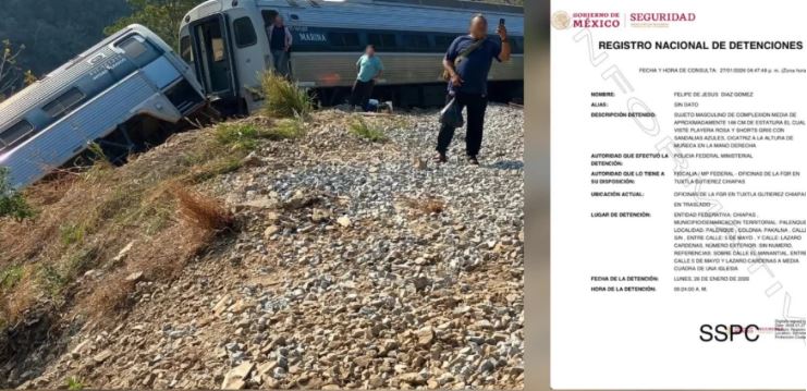 Detienen al maquinista, Felipe de Jesús «N», presuntamente implicado en el descarrilamiento del Tren Interoceánico ocurrido a finales de diciembre de 2025.