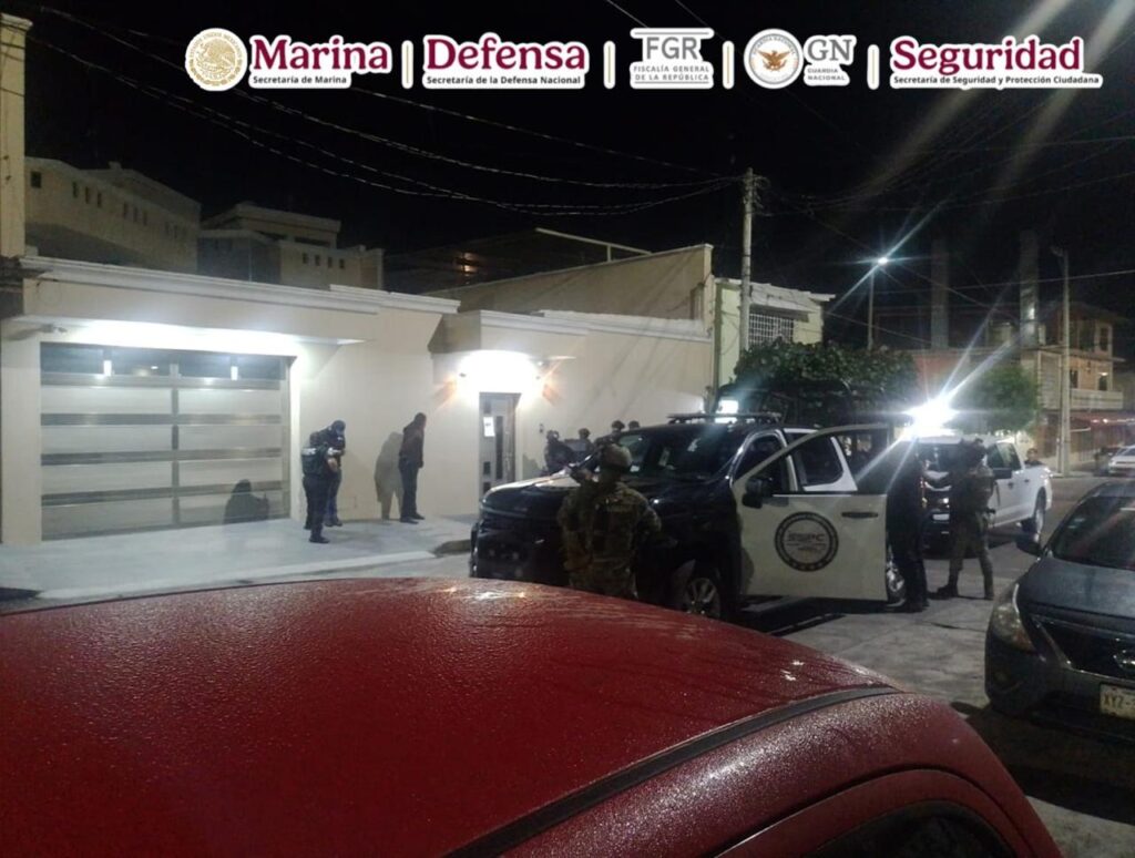 Resultado de los operativos para combatir a los generadores de violencia en el estado de Veracruz, en una acción encabezada por elementos de la Secretaría de Marina (Semar), en coordinación con la Fiscalía General de la República (FGR), Secretaría de Seguridad y Protección Ciudadana (SSPC), Secretaría de la Defensa Nacional (Defensa), Guardia Nacional (GN) y Secretaría de Seguridad Pública (SSP) del Estado, se ejecutaron tres órdenes de cateo en inmuebles vinculados a una célula delictiva dedicada a extorsión, privación ilegal de la libertad y robos con violencia.