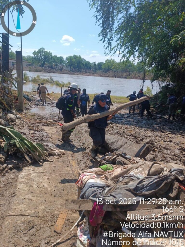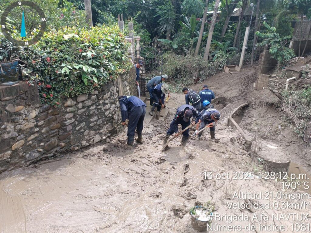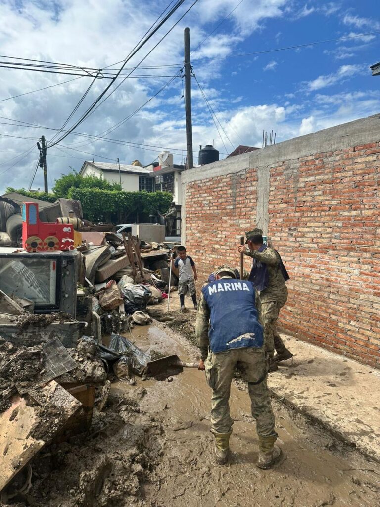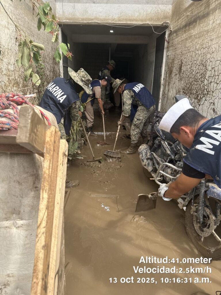 Asimismo, se llevan a cabo acciones de limpieza y retiro de escombros en calles y viviendas, con el fin de recuperar las condiciones de habitabilidad, libre tránsito y prevenir riesgos sanitarios; se han otorgado apoyos en materia de salud mediante brigadas médicas y distribución de medicamentos a quienes lo requieren; y como parte del esfuerzo coordinado, se realiza la entrega de despensas y de agua potable a las familias damnificadas, con el objetivo de contribuir a su pronta recuperación de la población.