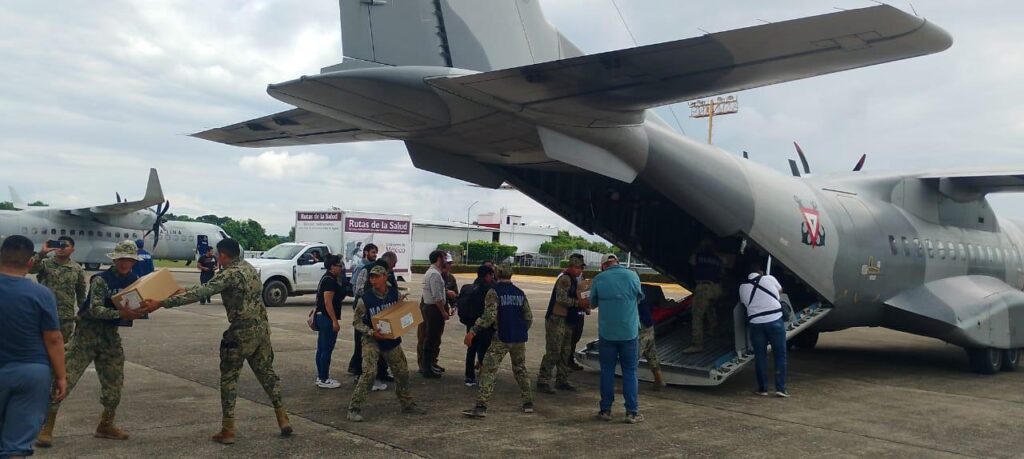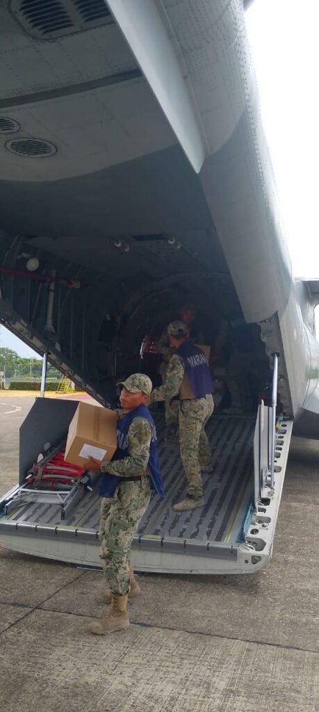 Cabe destacar, la apertura de caminos para restablecer la comunicación terrestre entre las comunidades, la habilitación de puentes aéreos que permiten el traslado de víveres, medicamentos, atención médica y equipos de emergencia hacia las zonas más afectadas; para lo cual, se cuenta con siete helicópteros y ocho aviones, que efectúan vuelos diarios en un área de responsabilidad de aproximadamente 17,200 kilómetros cuadrados, que comprenden 51 comunidades de ocho municipios prioritarios (Poza Rica, El Higo, Álamo, Ilamatlán, Ixhuatlán de Madero, Zontecamatlán, Texcatepec, Zacualpan, Veracruz), bajo la responsabilidad de Marina.