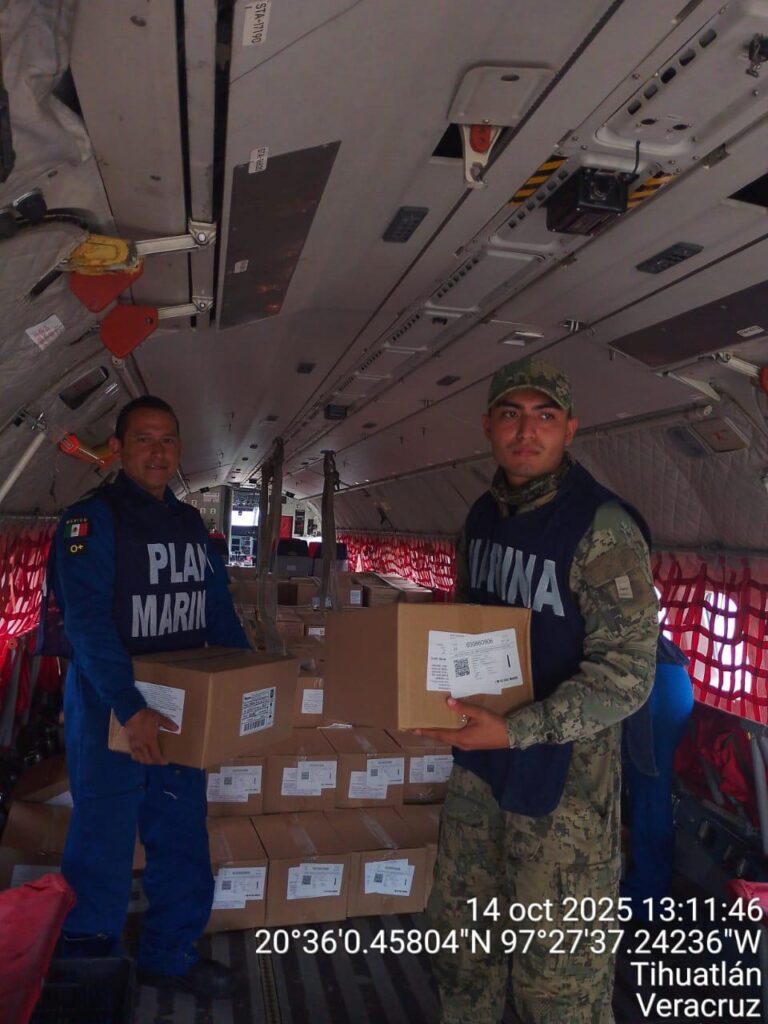 Ciudad de México.– La Secretaría de Marina, a través de la Armada de México, informa que, a través de la aplicación del Plan Marina, personal naval continúa brindando auxilio a la población civil, ante las afectaciones de los recientes fenómenos meteorológicos, donde más se necesita, en los estados de Veracruz, San Luis Potosí, Hidalgo y Puebla.