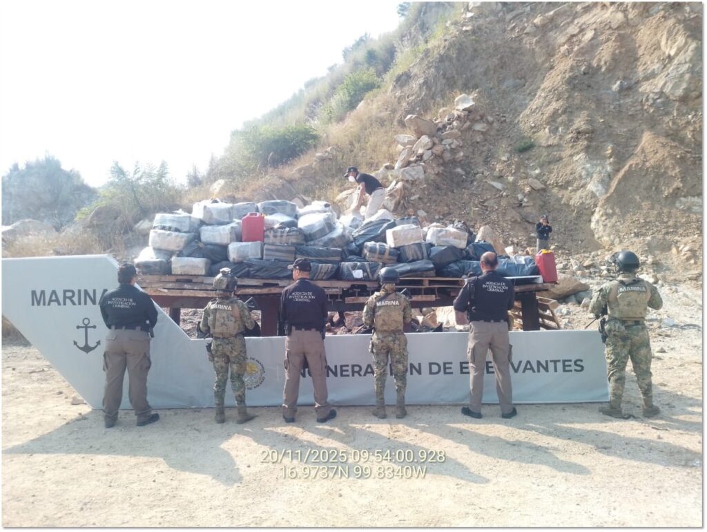 Acapulco, Guerrero.– La Secretaría de Marina, a través de la Armada de México, por conducto de la Octava Región Naval, informa que ayer, personal naval llevó a cabo la incineración de 4,908.11 (cuatro mil novecientos ocho kilogramos con 11 gramos) de clorhidrato de cocaína, en el municipio de Acapulco de Juárez, Guerrero.