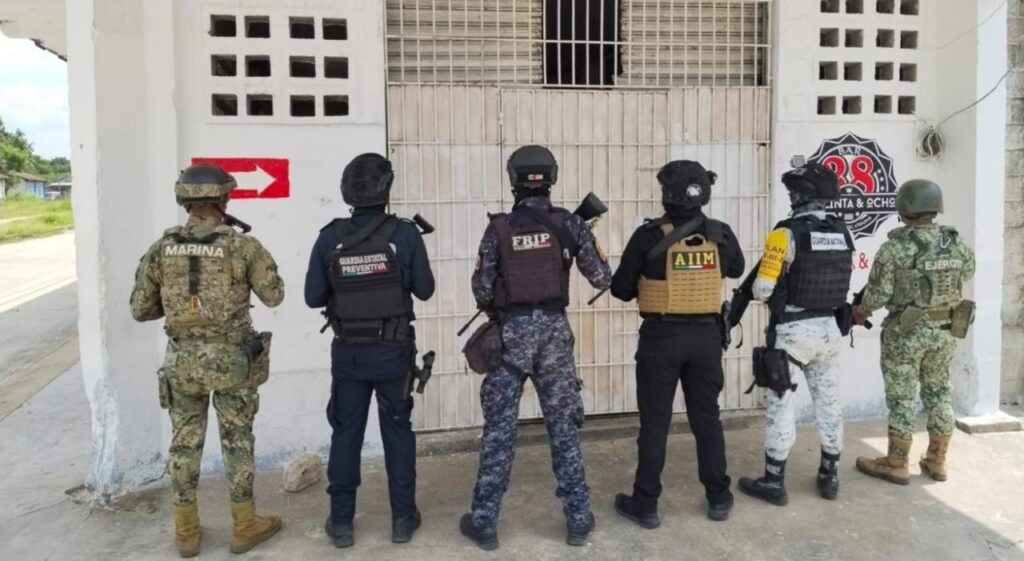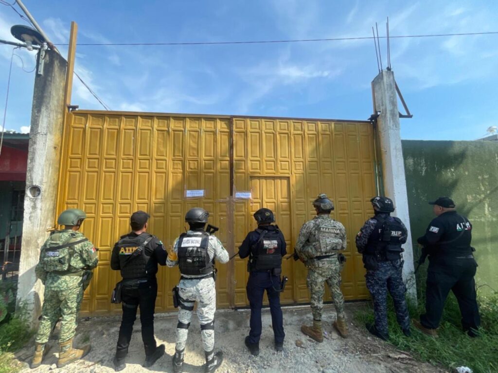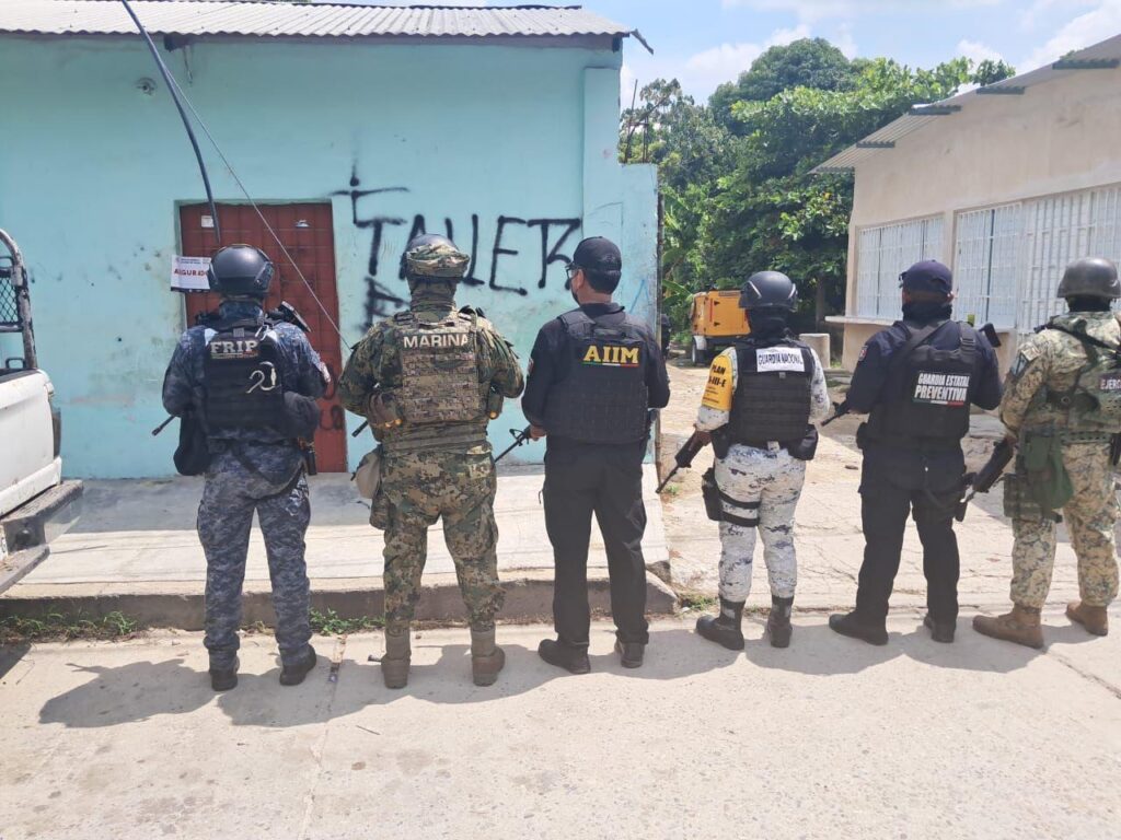 Puerto Chiapas, Chis.- La Secretaría de Marina a través de la Armada de México, por conducto de la Vigésima Segunda Zona Naval, informa que ayer, personal naval en una operación interinstitucional con la Fiscalía General del Estado, Defensa, Guardia Nacional, Fuerza de Reacción Inmediata PAKAL, Agencia de Investigación Criminal y Guardia Estatal, efectuó maniobras navales de bloqueo en la bocabarra El Castaño y proporcionó apoyo de seguridad durante siete cateos simultáneos a diversos inmuebles, logrando la detención de cuatro presuntos infractores de la ley, el rescate de 16 migrantes, así como el aseguramiento de cuatro inmuebles, tres vehículos, una embarcación menor tipo IMEMSA con siete bidones combustible, dos cargadores, 59 municiones, 36 dosis de presunta droga, numerario y fauna ilegal (búfalos) en el municipio de Mapastepec, Chiapas.