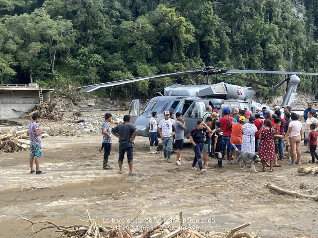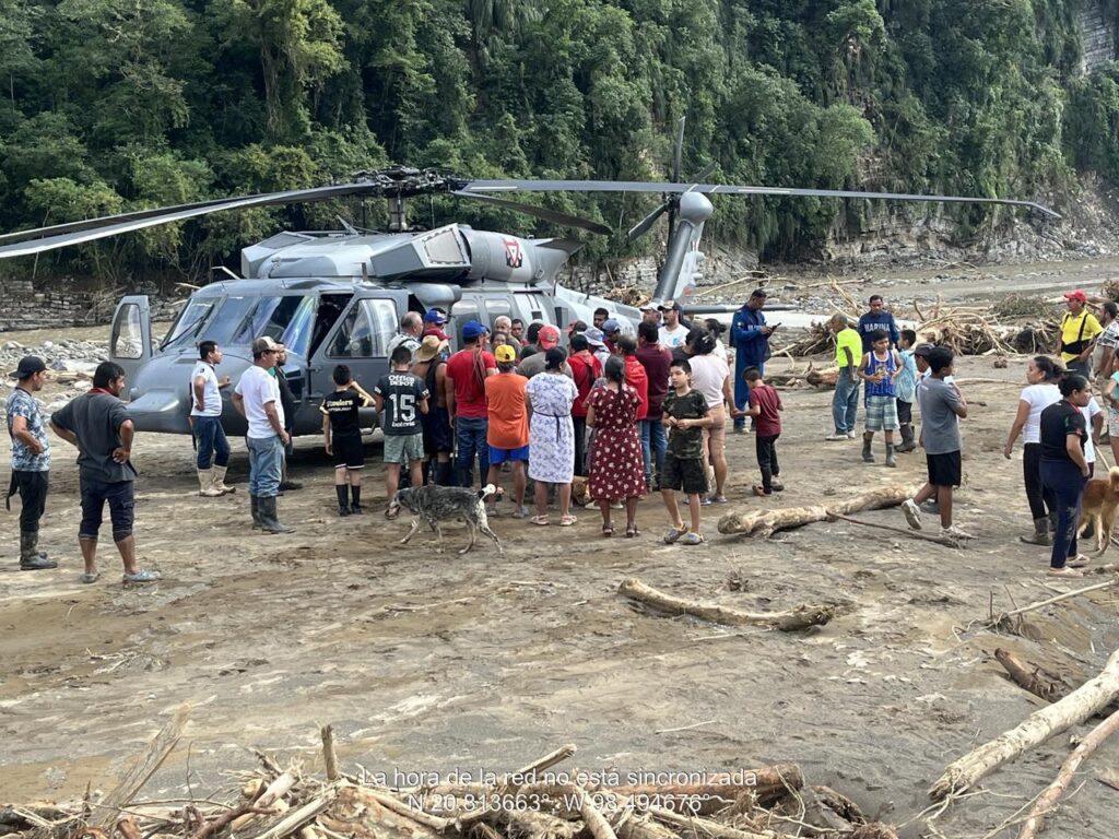 Cabe destacar que después de evaluar las zonas afectadas, se identificaron comunidades aisladas entre El Higo, Ilamatlán, Zontecomatlán, Texcatepec, Zacualpan, Ixhuatlán de Madero, dando un total de 46 comunidades aisladas que han sido divididas en 3 sectores operativos. Ese aislamiento es superado a través del puente aéreo para el cual se han dispuesto siete helicópteros, mismos que han entregado en total 428 despensas, 3,418 litros de agua y 3,800 kilos de medicinas e insumos médicos. Dichas operaciones son acompañadas por embarcaciones zodiac en operaciones fluviales, que complementan el esfuerzo y mantienen la cercanía del personal naval con la población vulnerable y aislada.
