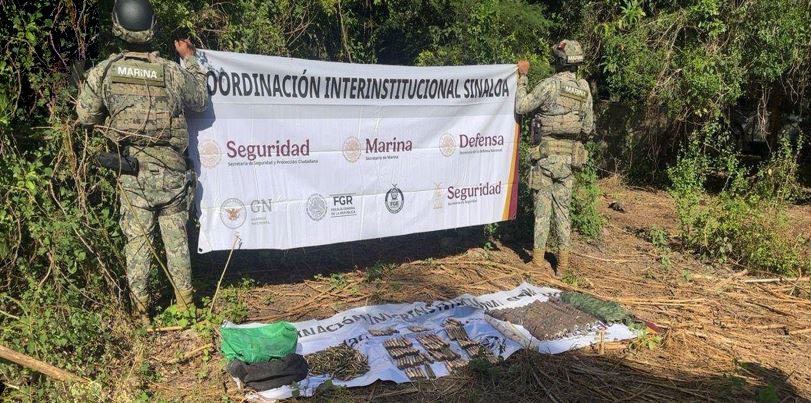 -En Elota, elementos de Semar, al realizar recorridos de seguridad, aseguraron una barra explosiva, 69 cilindros metálicos y 1,014 cartuchos y un uniforme táctico.