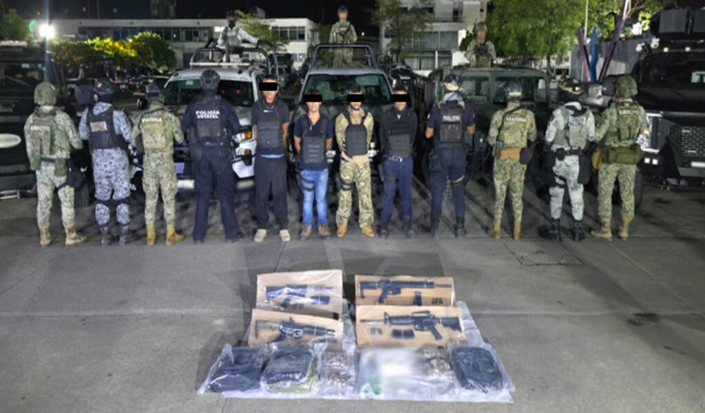 -En Chilpancingo, elementos del Ejército Mexicano, GN, Secretaría de Seguridad y Protección Ciudadana (SSPC), FGR, Secretaría de Marina (Semar), Fiscalía y Policía Estatal detuvieron a dos personas, les aseguraron dos armas de fuego, equipo táctico, una motocicleta y diversas dosis droga.