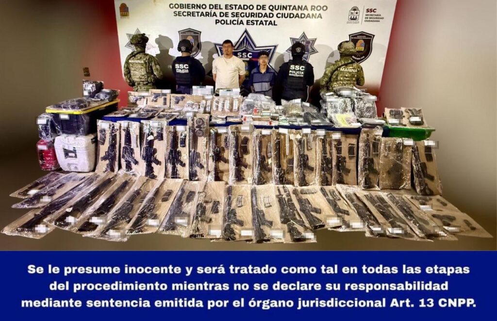 Los detenidos son presuntos integrantes del grupo delictivo CJNG. Marcos Josué “N” es considerado como principal operador logístico, encargado de la distribución de armamento y equipo táctico en Benito Juárez, así como en Puerto Morelos, Kantunilkín e Isla Mujeres.