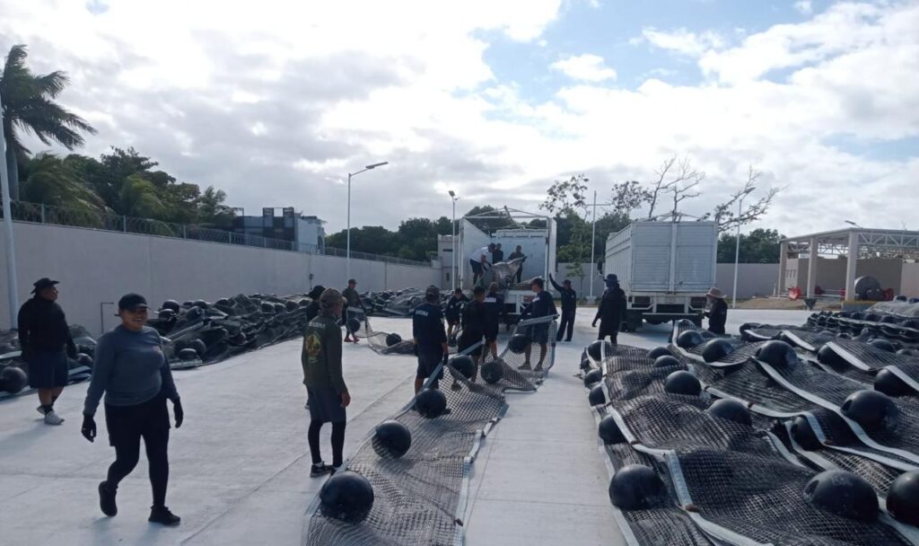 Para continuar con dichas acciones, se mantienen empleadas 16 unidades de superficie, de las cuales uno es un Buque Sargacero Oceánico, 11 Buques Sargaceros Costeros y cuatro Sargaceras Anfibias, de igual forma se cuenta con 16 embarcaciones menores de apoyo, así como 9 mil 500 metros de barreras empleadas para su contención, y se tiene proyectado en coordinación con el Gobierno del Estado, implementar seis mil metros más; mismas barreras que por medidas preventivas, en algunas zonas son retiradas durante temporada de frentes fríos, y se encuentran en etapa de repliegue para brindarles mantenimiento, limpieza, arreglo de desperfectos y cambio de componentes, para asegurar su correcto funcionamiento, y al término de esta temporada, serán recolocadas en las zonas requeridas.