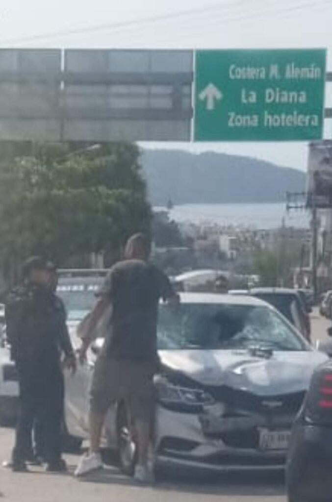 Acapulco de Juárez, Gro., 30 de enero del 2026.- El conductor de un vehículo Chevrolet Malibu atropelló a un hombre en la avenida Farallón del Obispo, muy cerca de la glorieta de la Diana Cazadora.