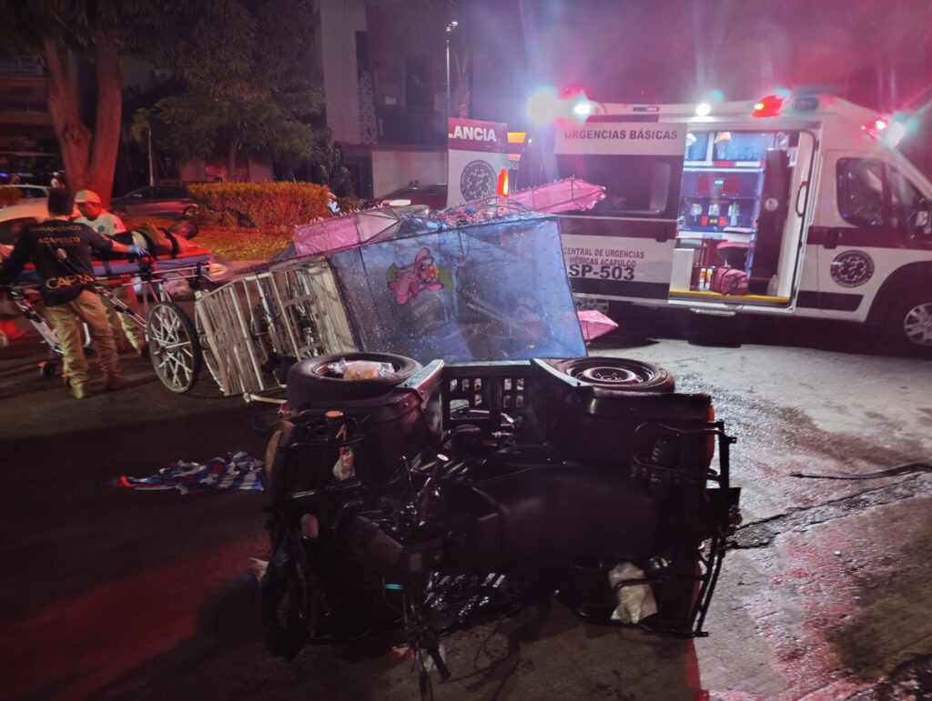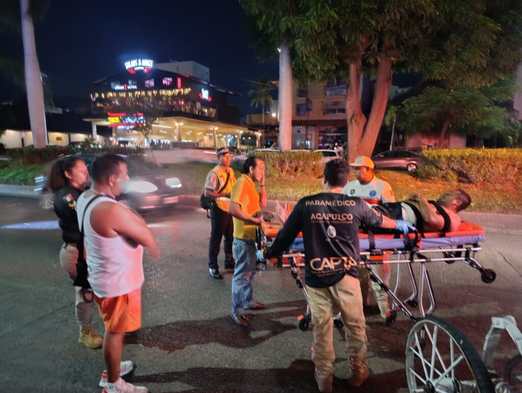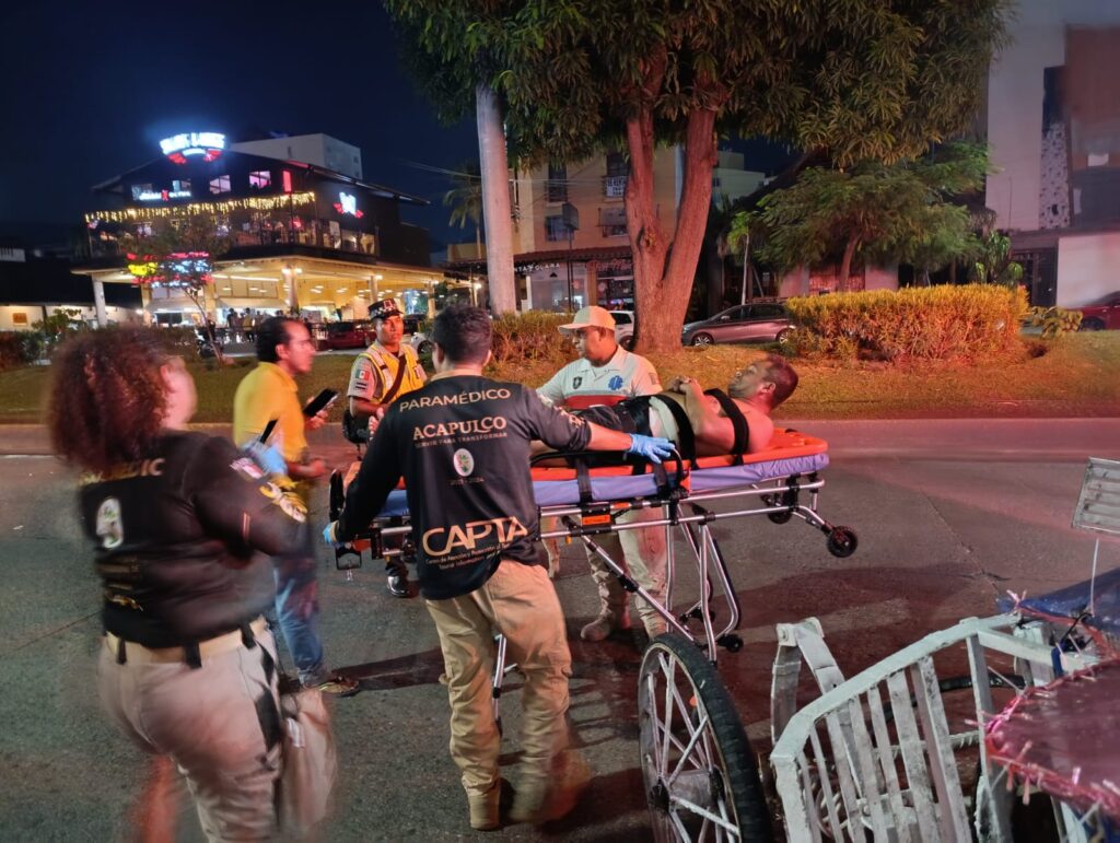 Cuatro Turistas quienes paseaban en una Calandria fueron embestidos por el conductor de un vehículo Chevrolet Onix con placas FEG-488-H del estado de Guerrero, quien circulaba en estado de ebriedad, los hechos en la avenida Costera Miguel Alemán frente al condominio Oceanic 2000 en el puerto de Acapulco, las víctimas resultaron con golpes, heridas y fracturas en diferentes partes del cuerpo siendo auxiliados por paramédicos del Centro de Urgencias Médicas de Acapulco CUMA y elementos de la Guardia Nacional, el responsable a bordo de su vehículo, se dio a la fuga con dirección a la avenida Escénica y a la altura del Fraccionamiento Brisas Guitarron se salió de la cinta asfáltica cayendo a un barranco de 30 metros de profundidad, en dónde quedó a escasos centímetros de la calle principal de dicho fraccionamiento de donde pretendió darse a la fuga abandonando su vehículo siendo detenido por agentes policíacos y auxiliado por paramédicos de la Cruz Roja, el responsable de los hechos gritaba que se retiraba a su domicilio particular en el poblado de la Poza en punta Diamante.