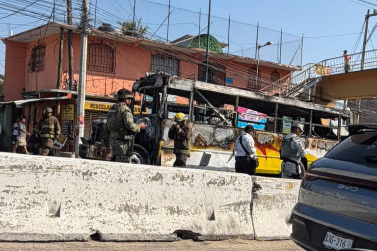 Posteriormente los pistoleros rociaron gasolina y le prendieron fuego al camión urbano.