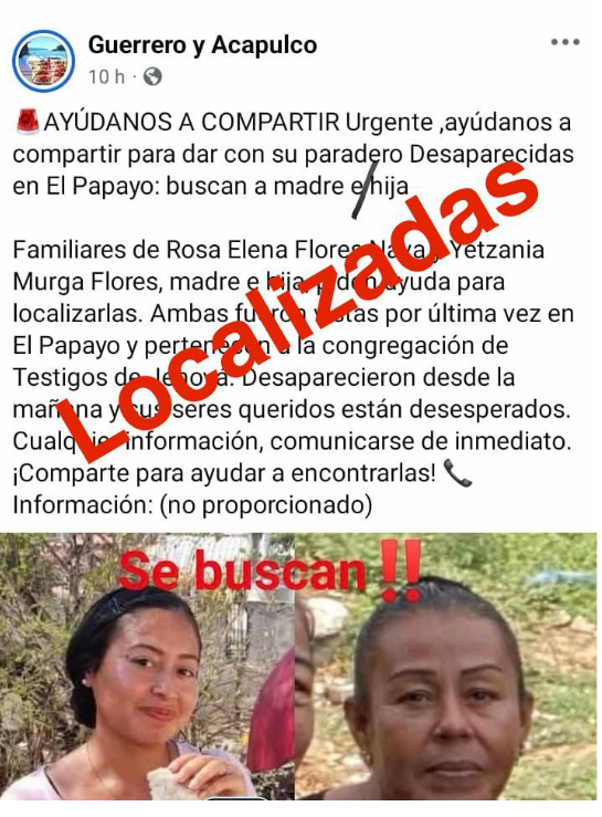 Mujeres en Coyuca de Benítez no estaban desaparecidas si no escondidas mediante un secuestro virtual.