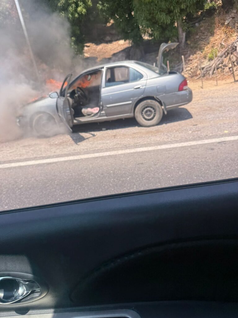 Según las autoridades, el automóvil gris de la marca Nissan tipo Sentra se quemó, al parecer por corto circuito. Bomberos sofocaron el fuego y no se reportaron lesionados.