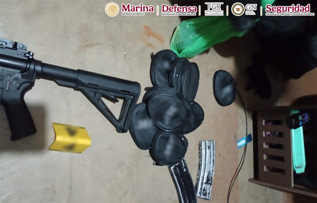 Como resultado de un despliegue operativo coordinado y simultáneo, se realizó la detención de nueve hombres y cinco mujeres, así como el aseguramiento de cinco armas largas, cuatro armas cortas, seis granadas, 19 cargadores, 544 cartuchos útiles, nueve chalecos balísticos, 10 vehículos, 16 motocicletas y diversas dosis de droga. Asimismo, en el lugar se liberó a una persona que se encontraba privada de la libertad, a quien se le brindó auxilio inmediato.