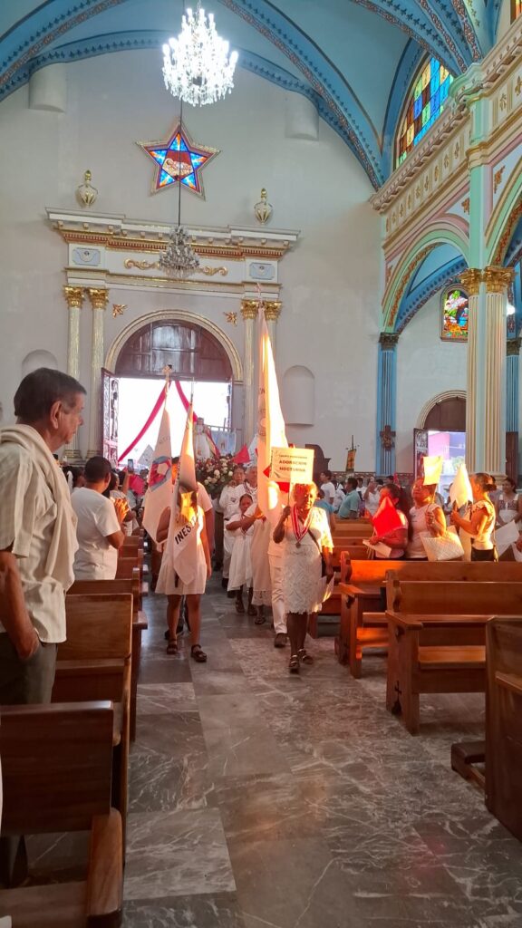 Durante el trayecto, la imagen de Cristo Rey fue llevada con reverencia por integrantes de la Adoración Nocturna, quienes mostraron su compromiso y devoción al representar a esta figura central de la fe cristiana, el clima de solemnidad y alegría se amalgamó a medida que avanzaban hacia la iglesia, donde la ceremonia continuaría.
