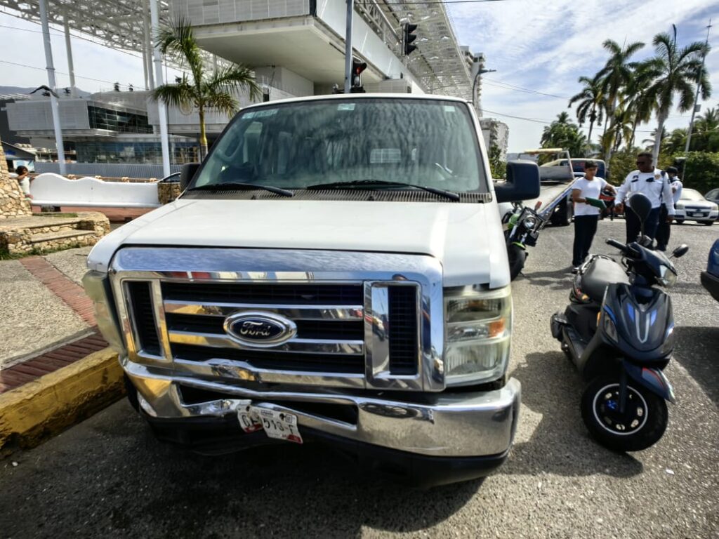 Choque en la avenida Costera Miguel Alemán y Vía Rápida tres personas resultaron lesionadas al Impactarse una camioneta Ford Van color blanca del colegio Militarizado Madrid y un automóvil Nissan Sentra SR color blanco.