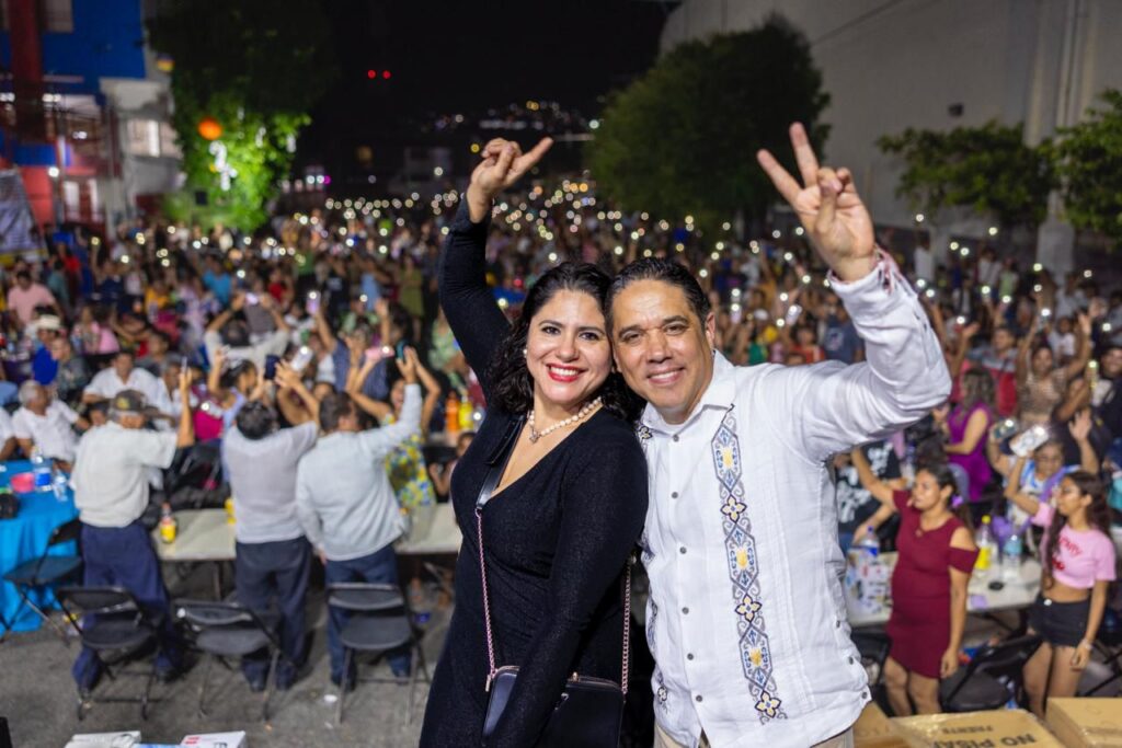 Acapulco, Gro., jueves 18 de diciembre de 2025.- En un ambiente de convivencia y mensaje social, el exalcalde de Acapulco y dirigente estatal del PRD, Evodio Velázquez Aguirre, junto a su esposa Perla Edith Martínez, encabezaron la tarde-noche de este miércoles su tradicional posada, a la que acudieron más de tres mil personas en el puerto.