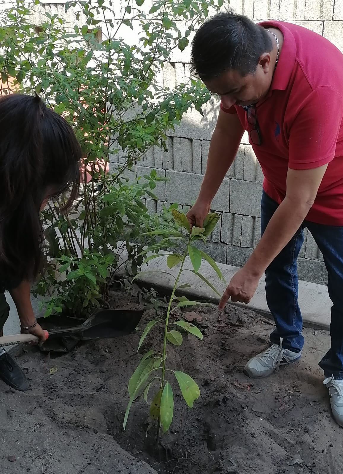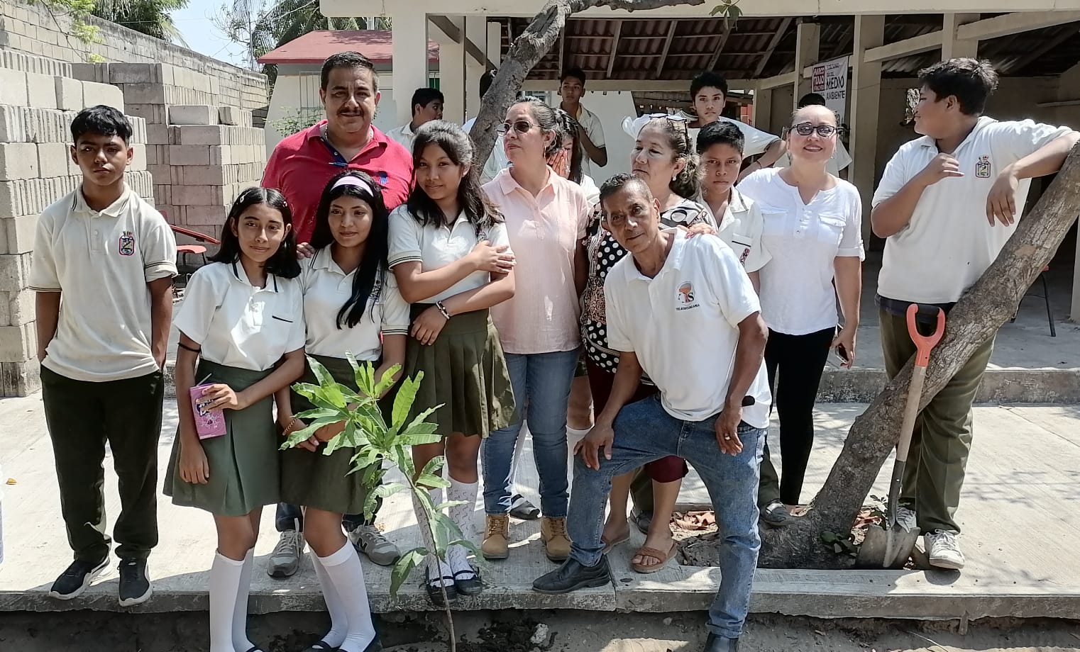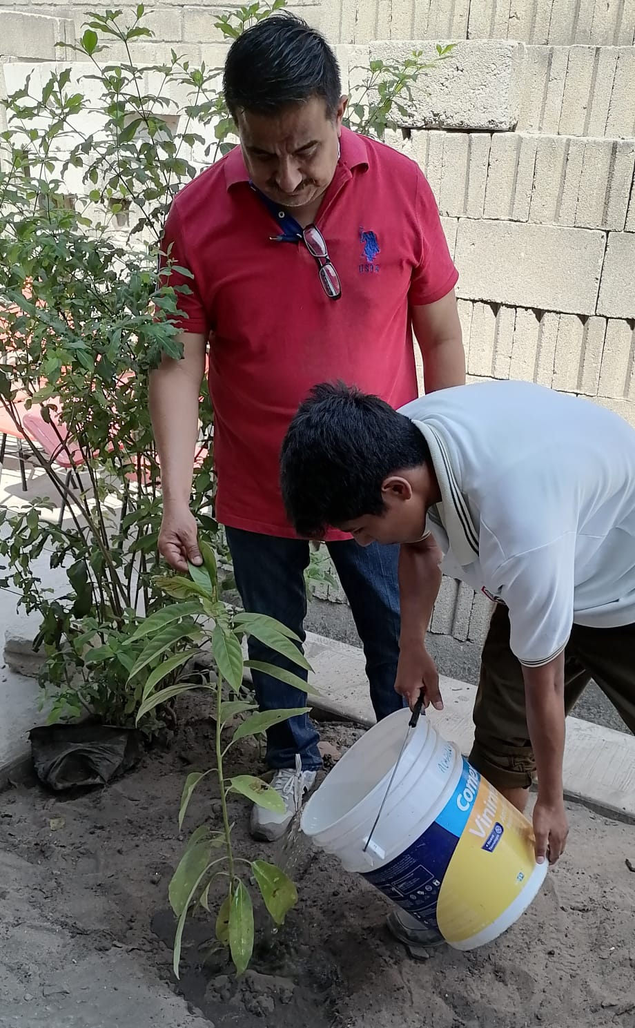 Como parte de las acciones realizadas, Sánchez Alarcón, junto estudiantes del plantel, realizaron una reforestación al interior de sus instalaciones educativas.